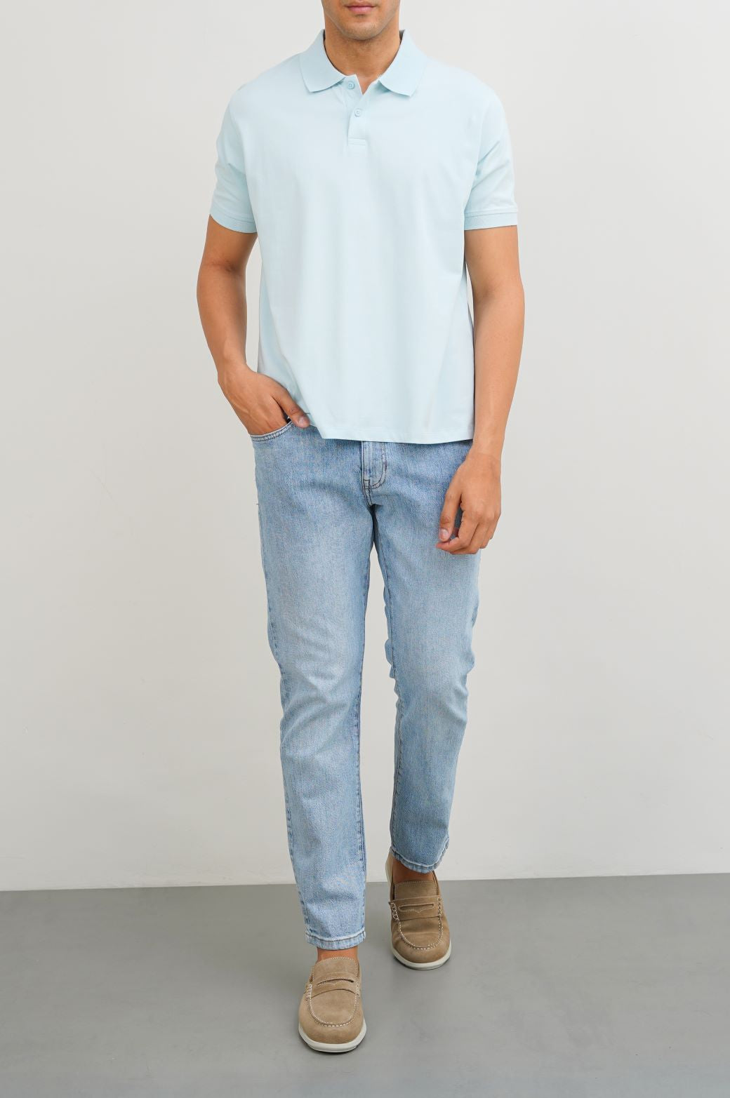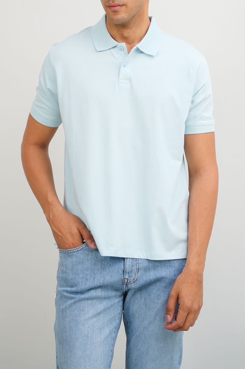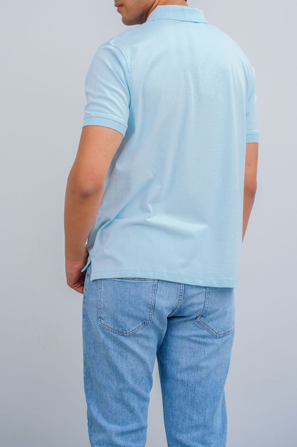Design details: Pique polo featuring a collar with front button fastening and short sleeves.