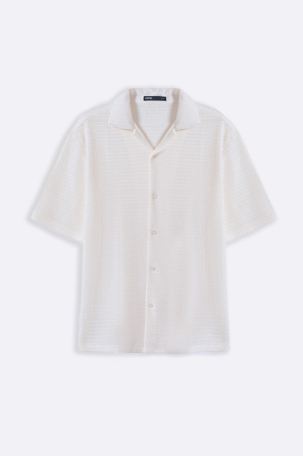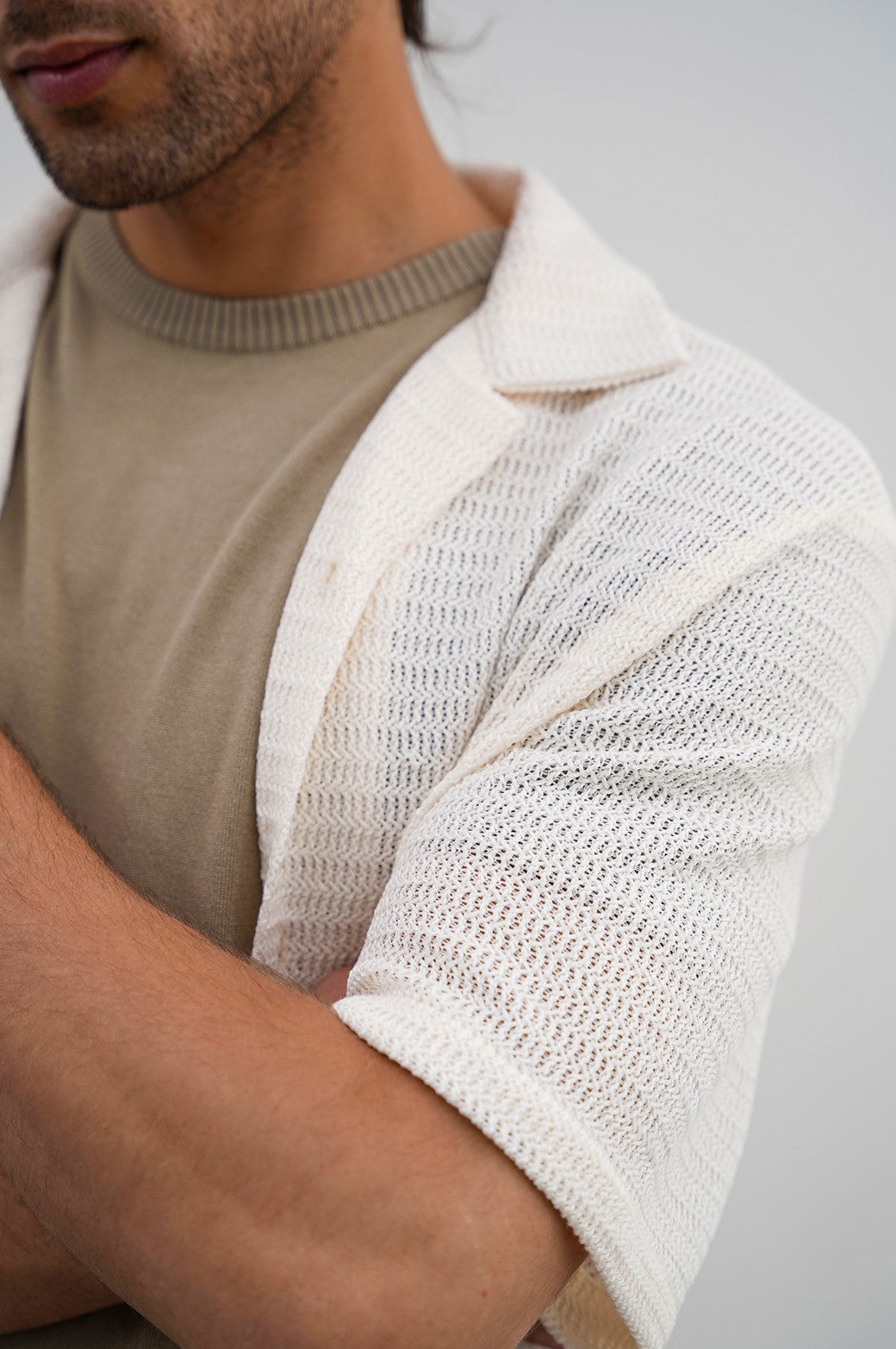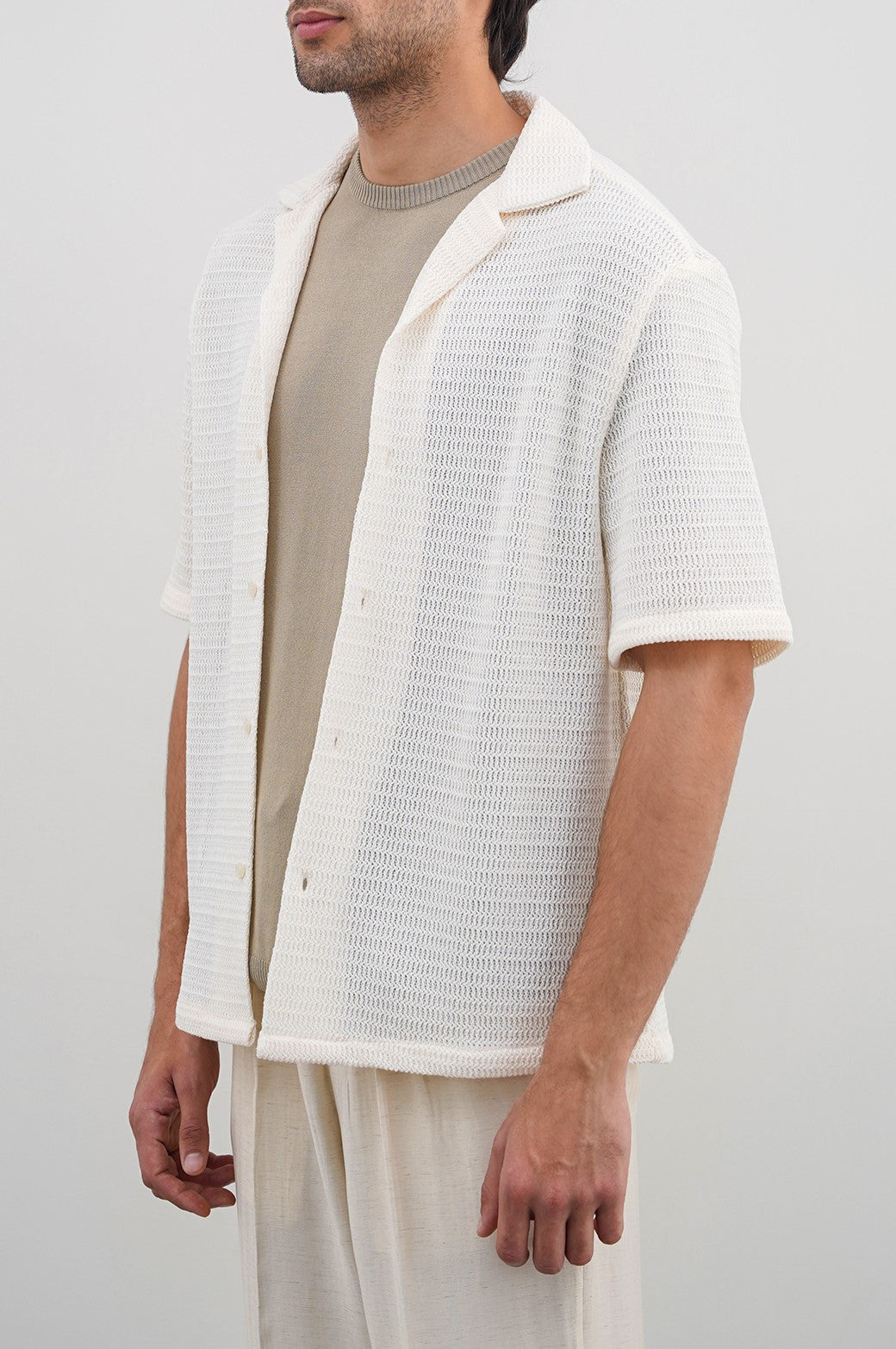 Design details: Short-sleeve shirt featuring a crochet design, with a button-down front closure.