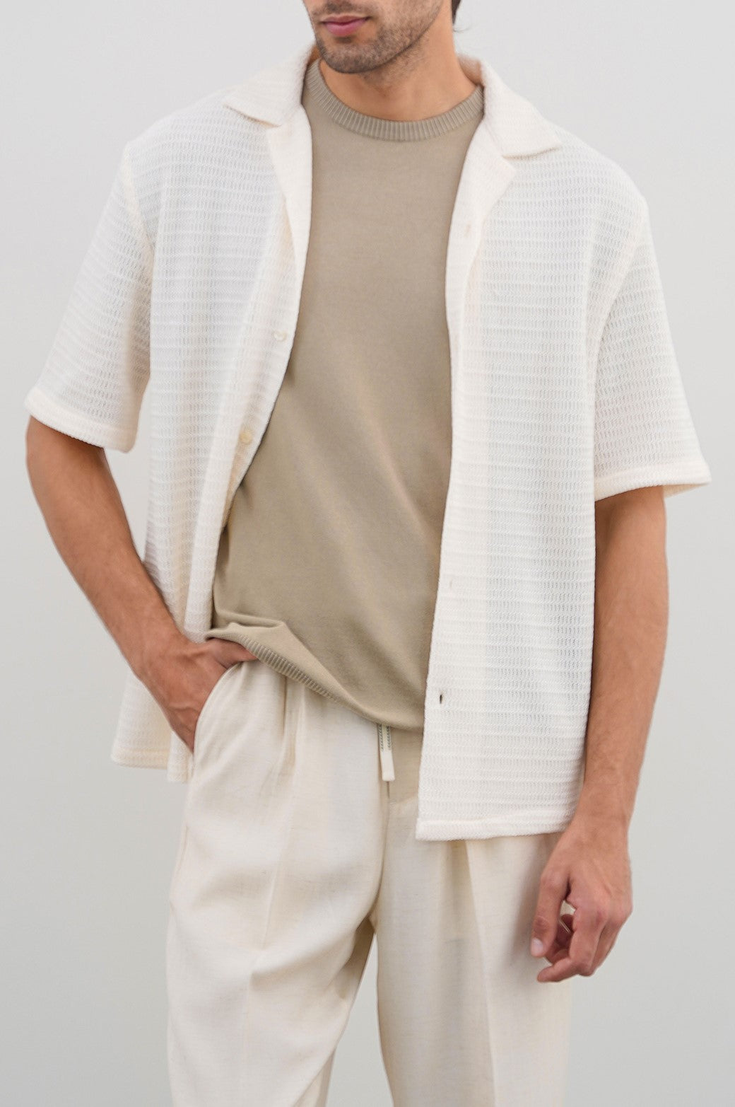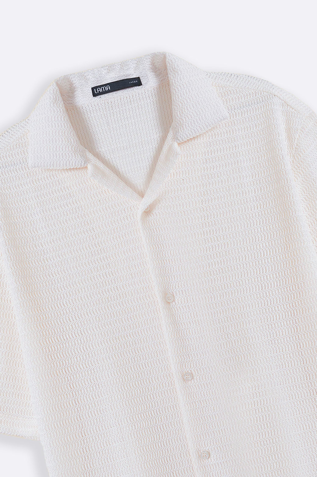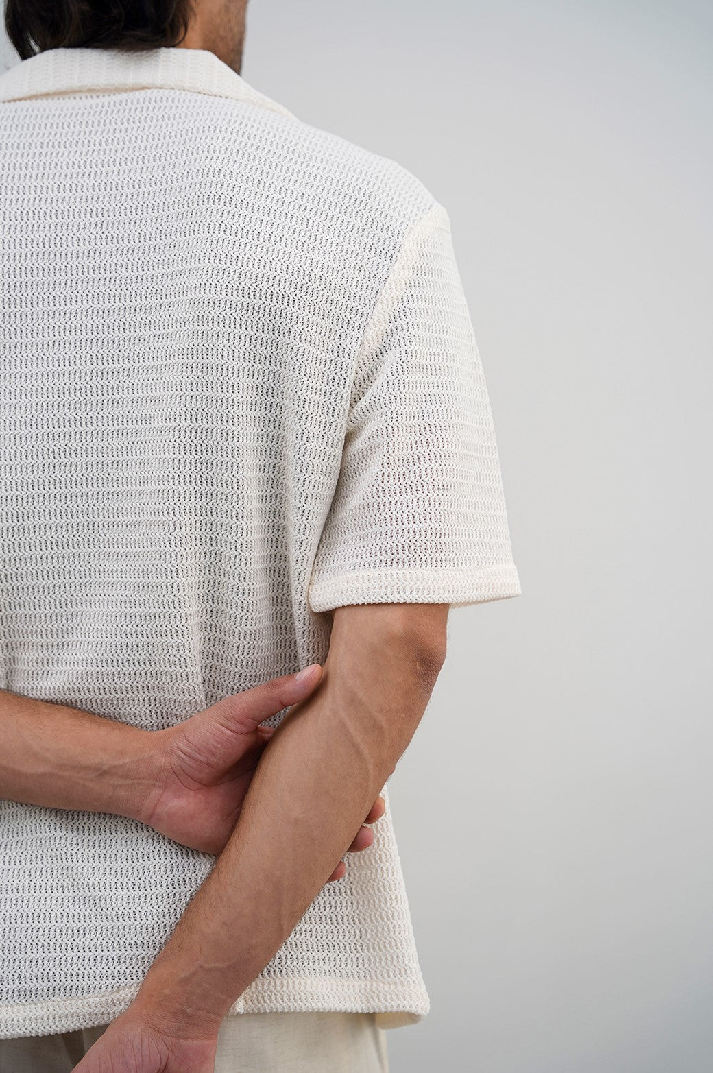 Design details: Short-sleeve shirt featuring a crochet design, with a button-down front closure.