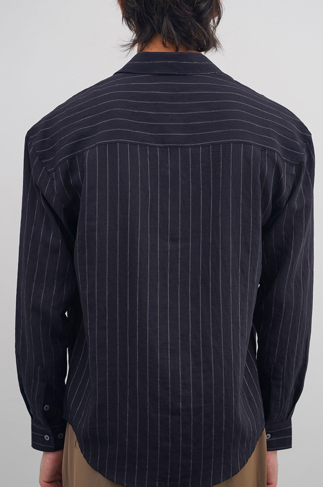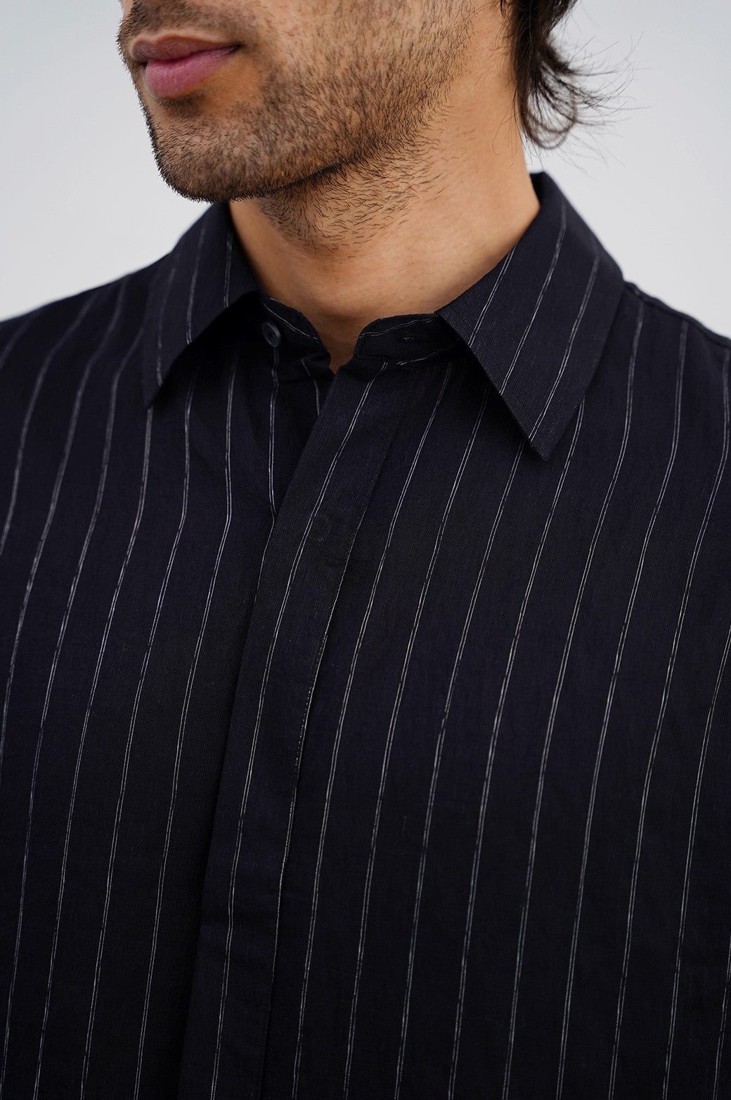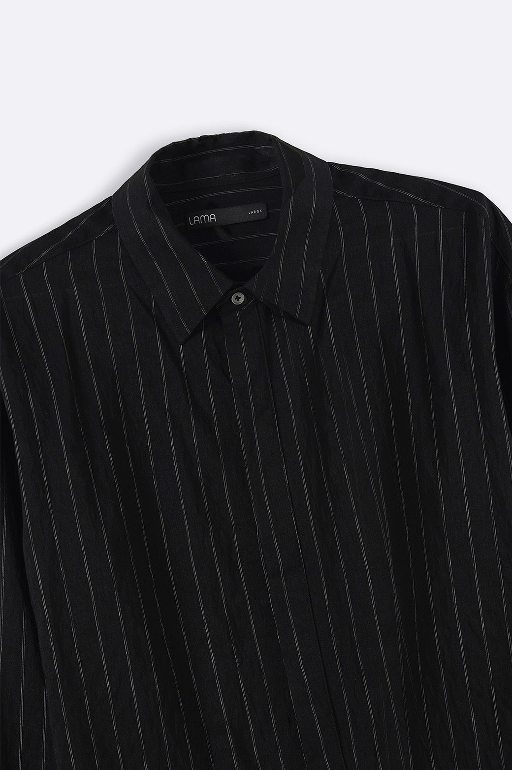 Design details: Linen blend button down shirt, with a front hidden placket and long cuffed sleeves.