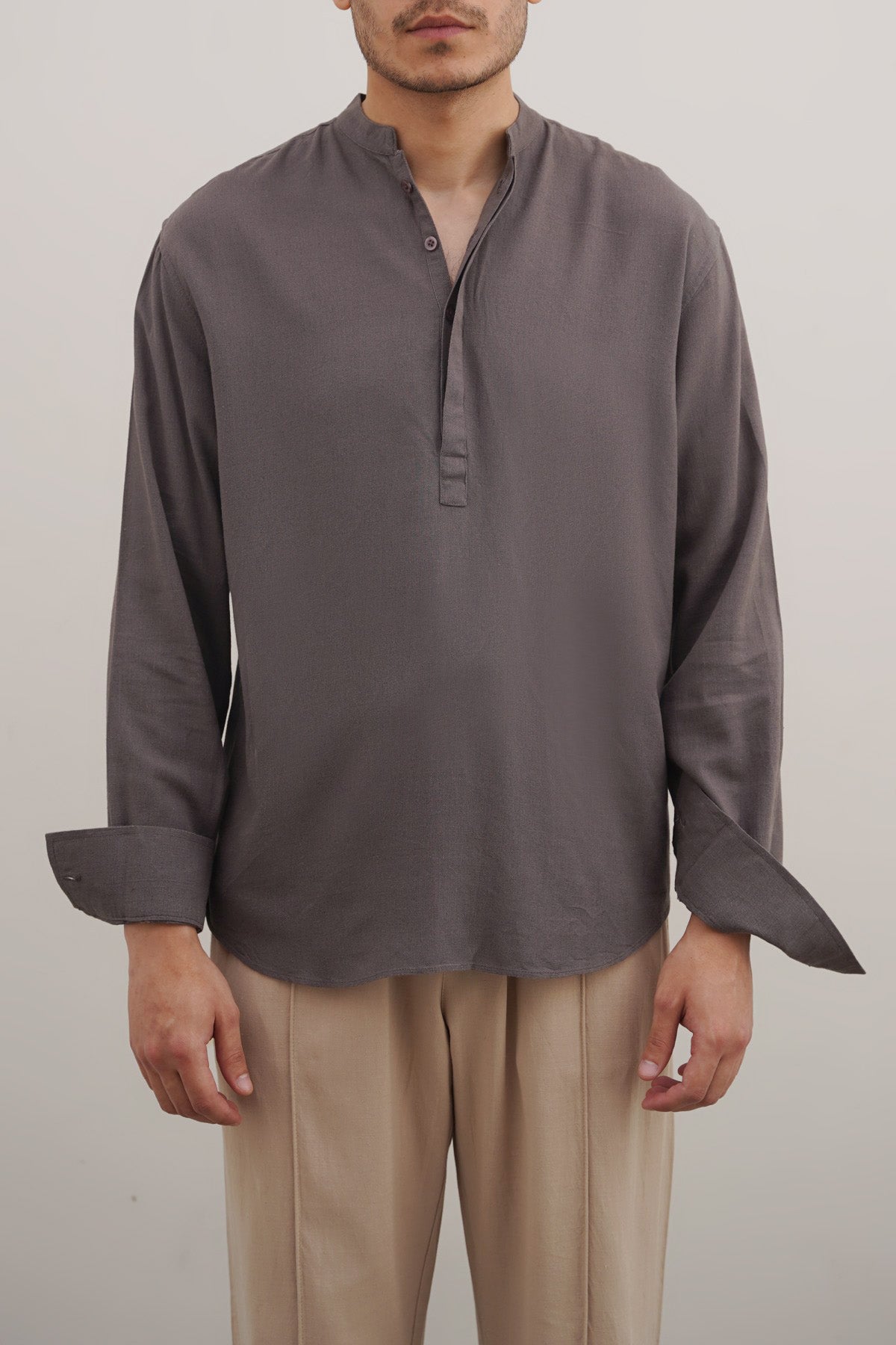 Design details: Full sleeves band collar shirt with a hidden half button placket.