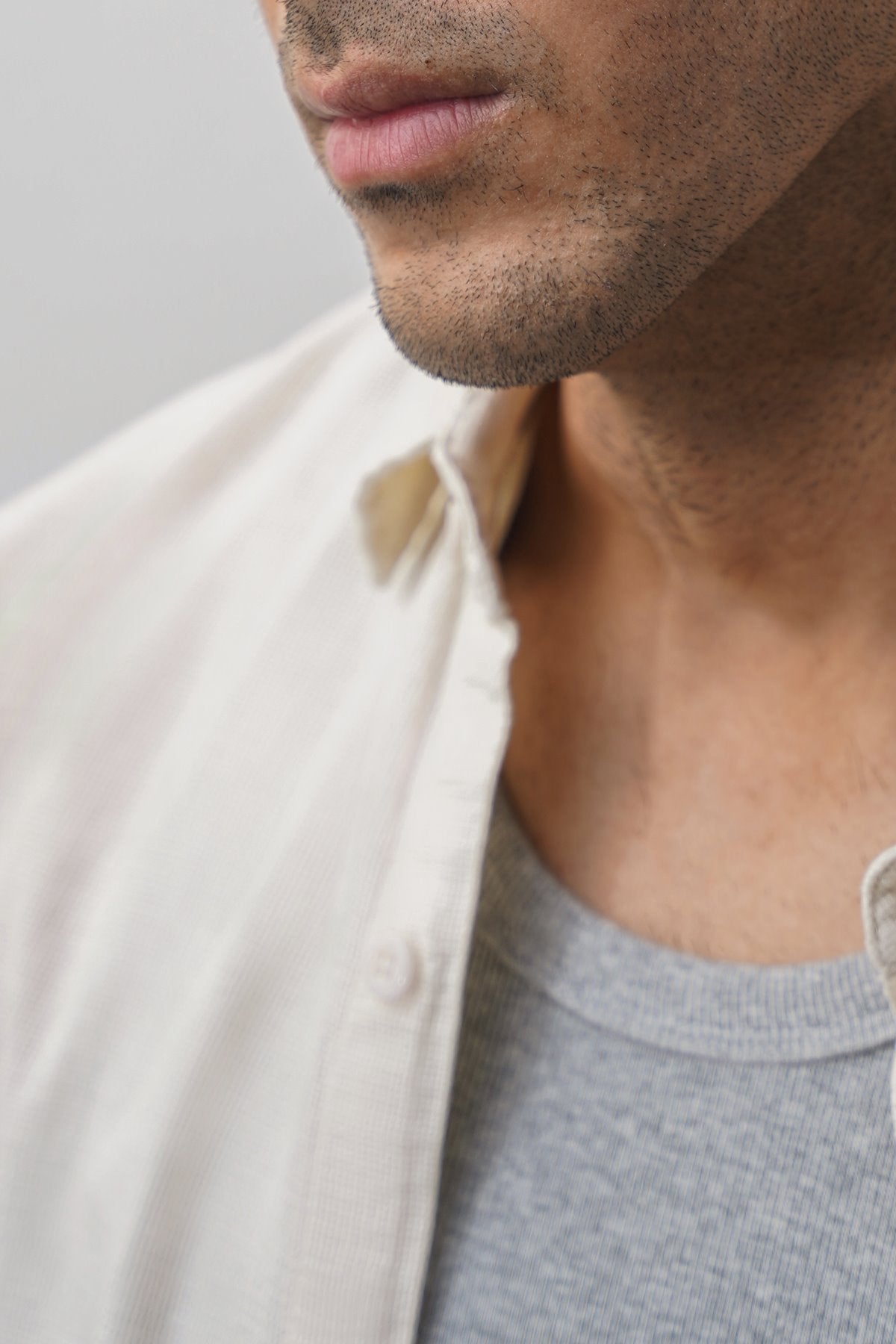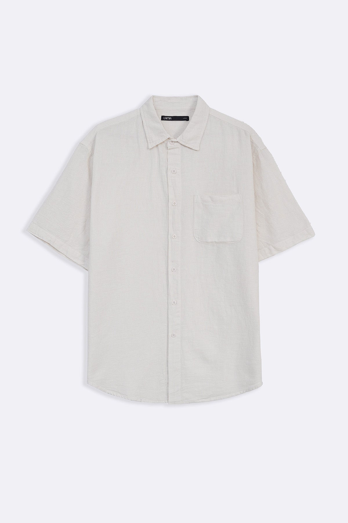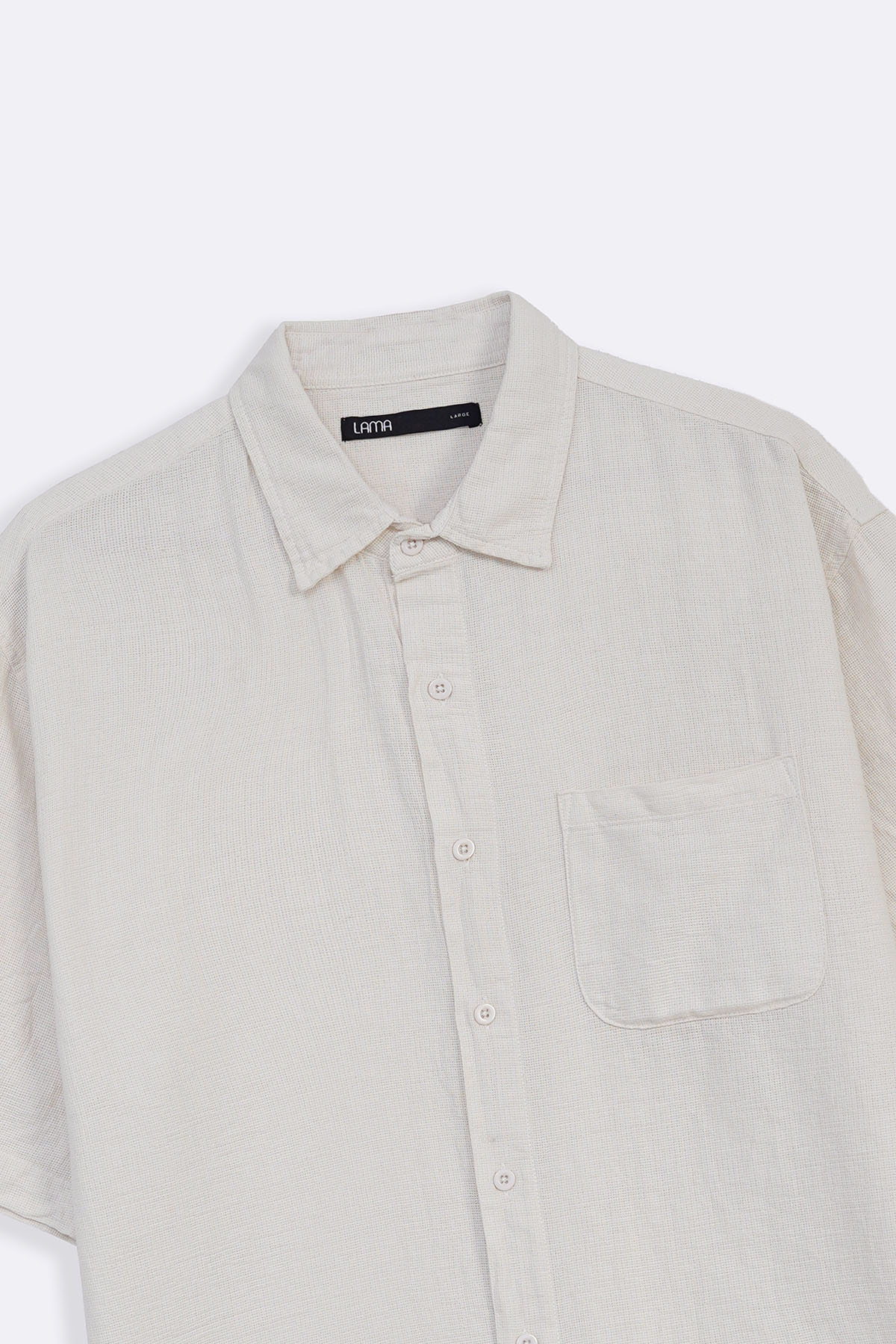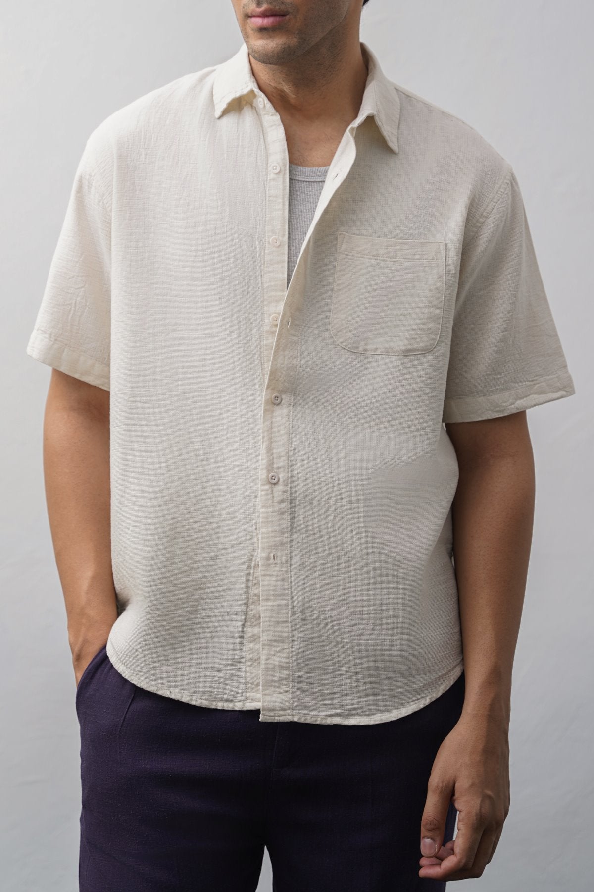 Design details: Half sleeves button down shirt with patch pocket and collar detail.