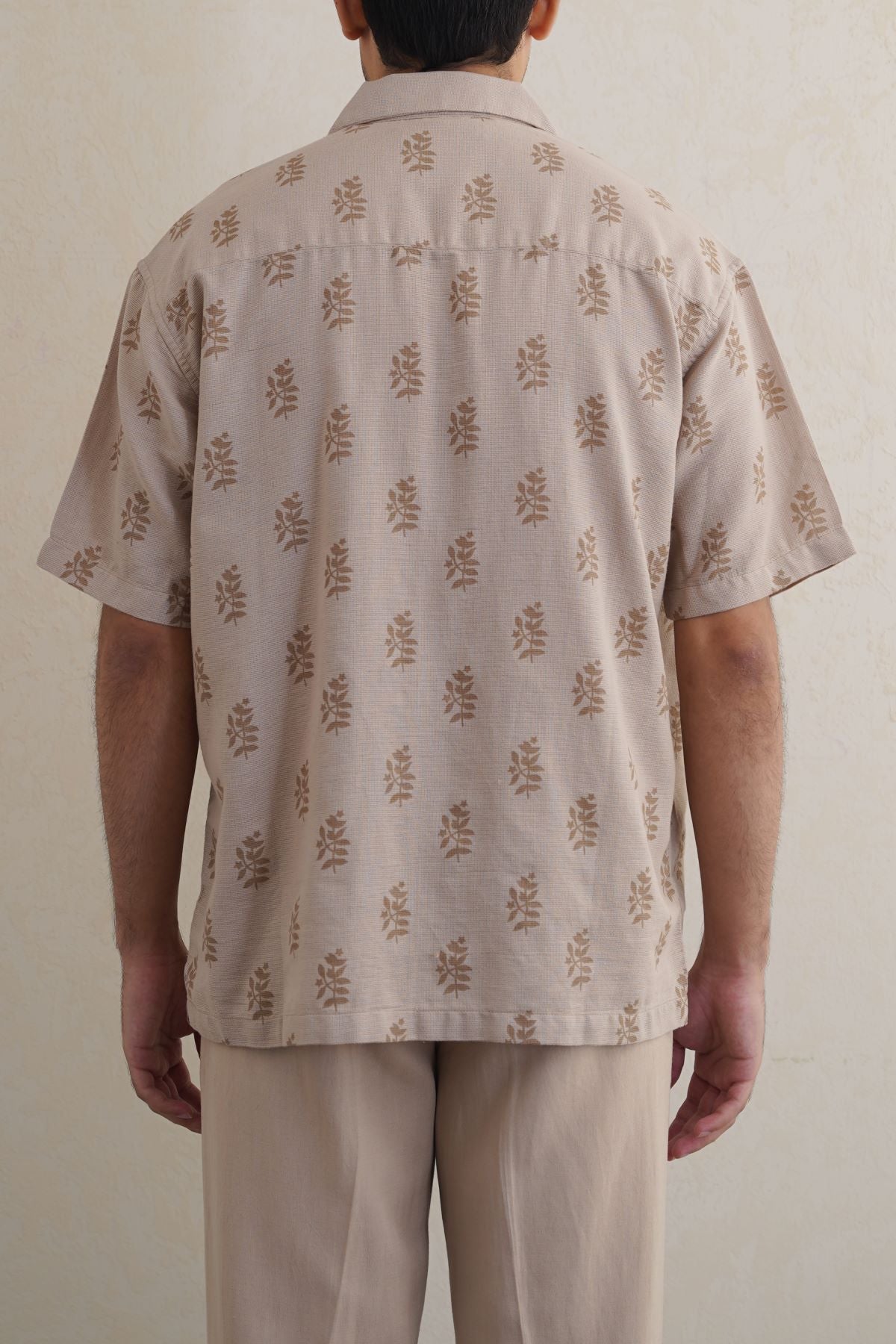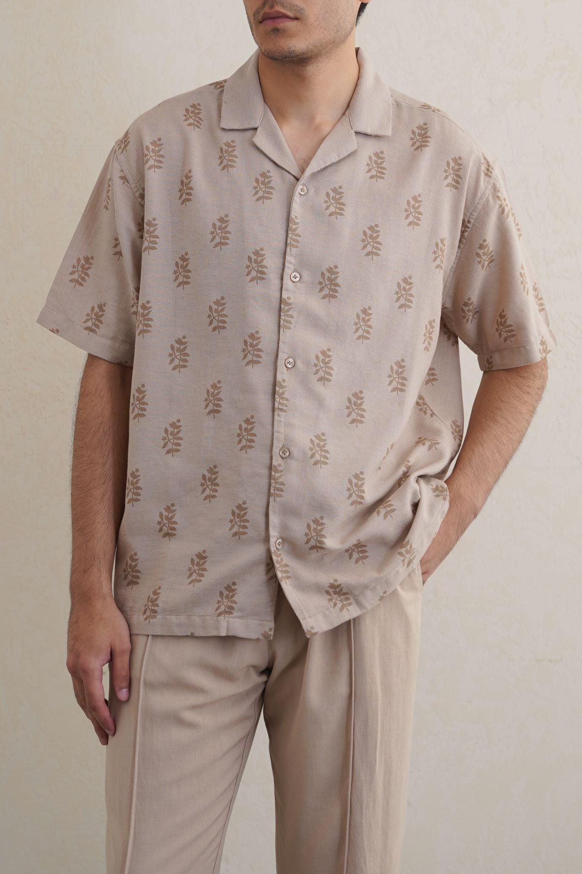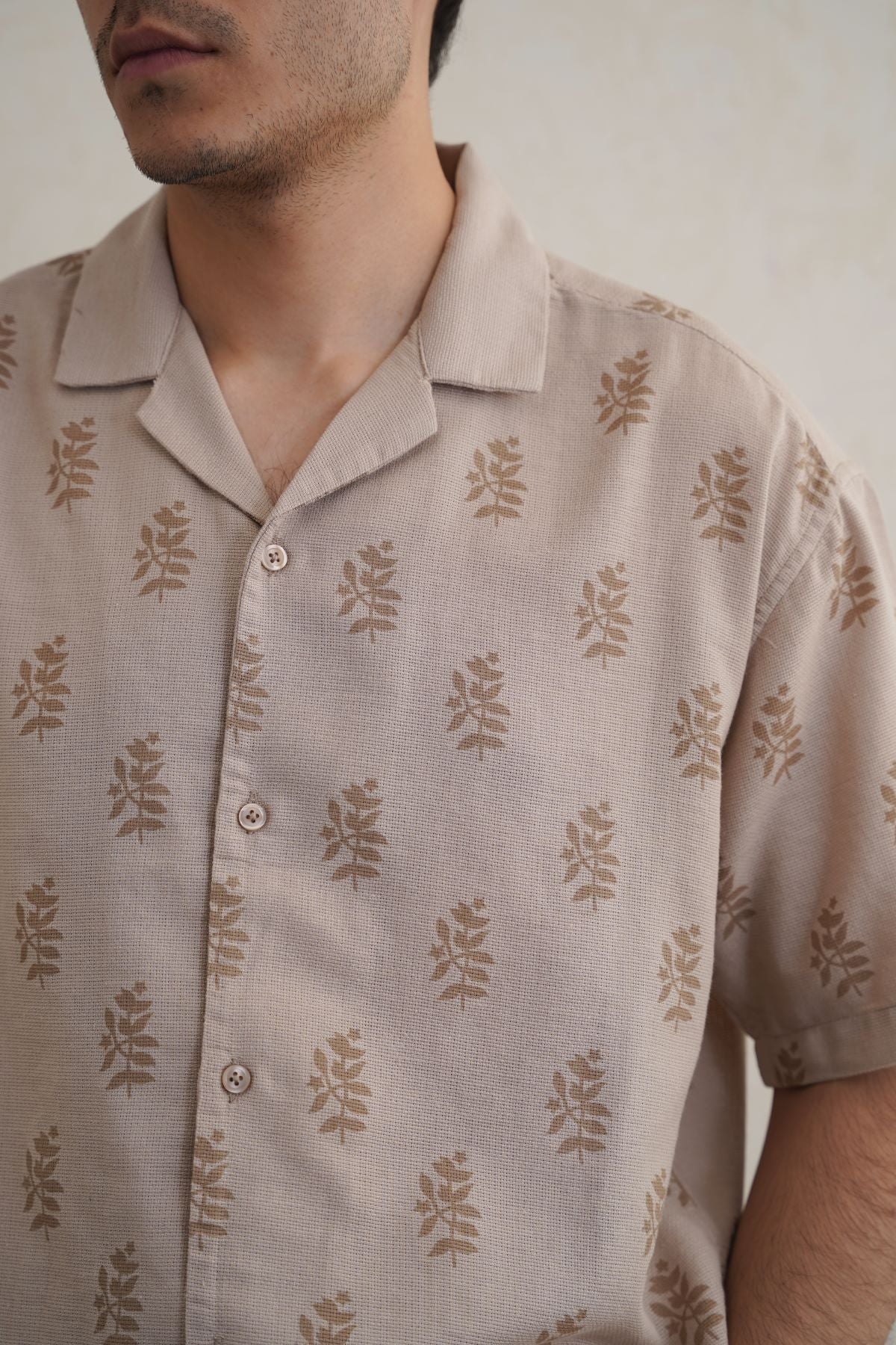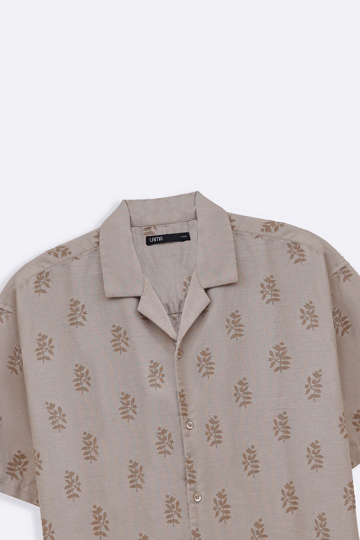 Design details: Printed half sleeves shirt with safari collar.