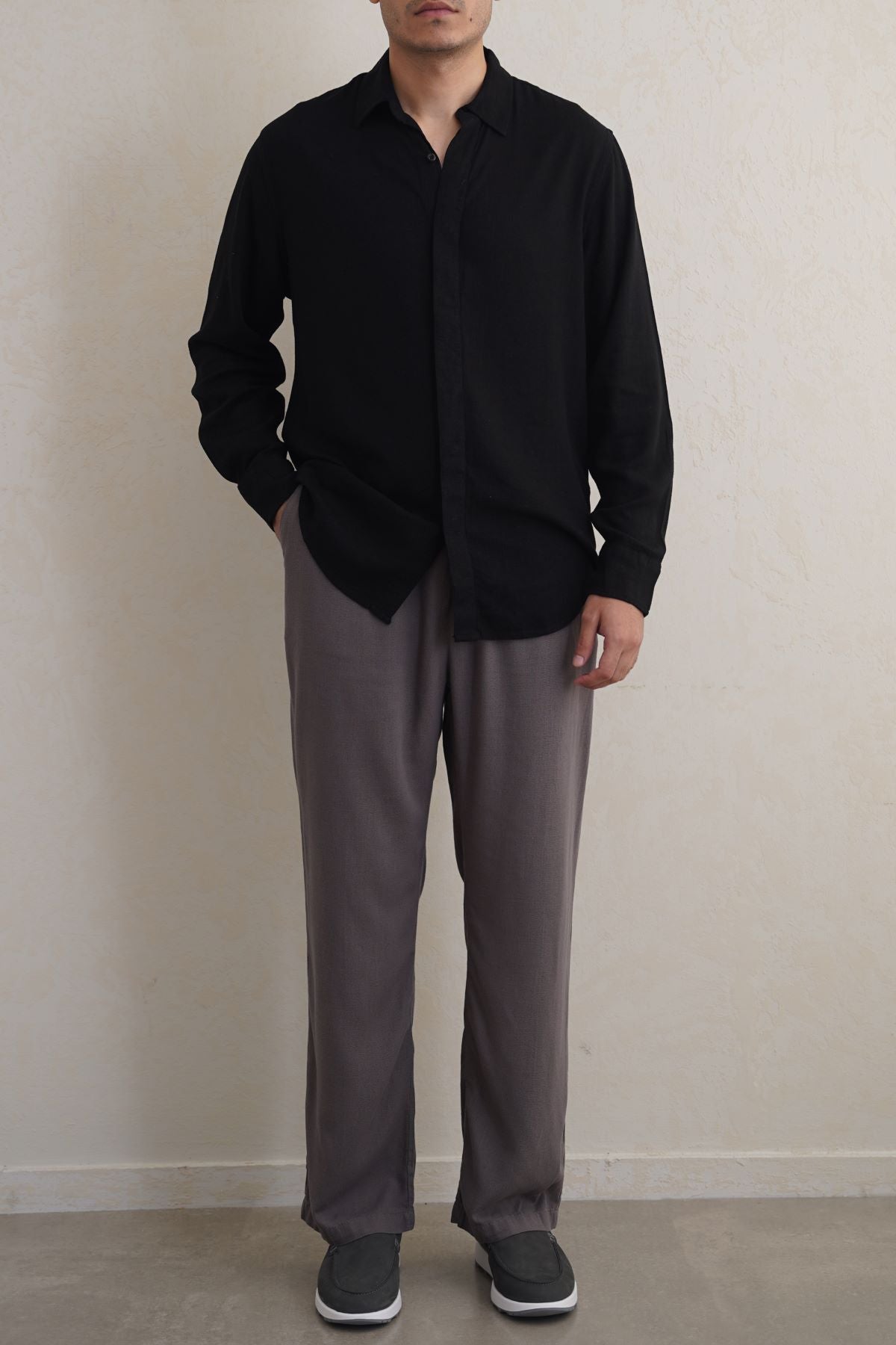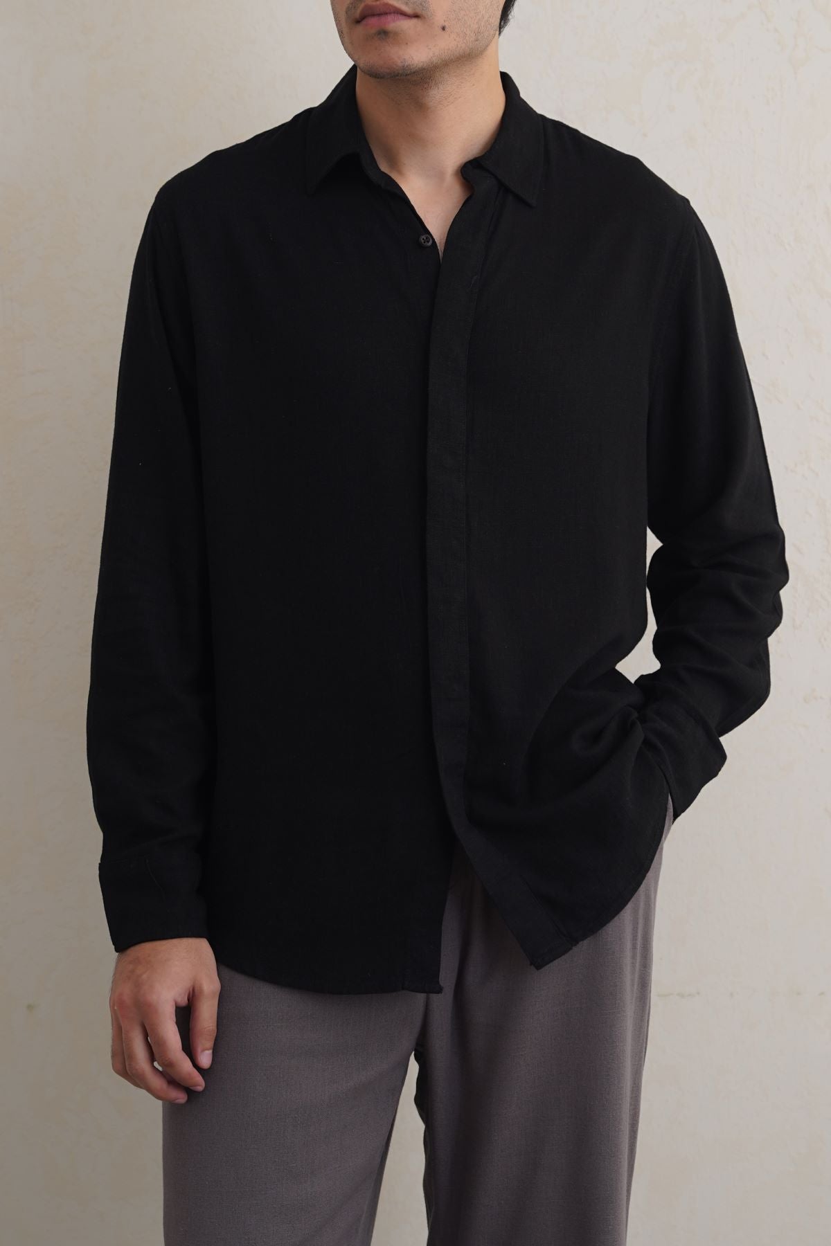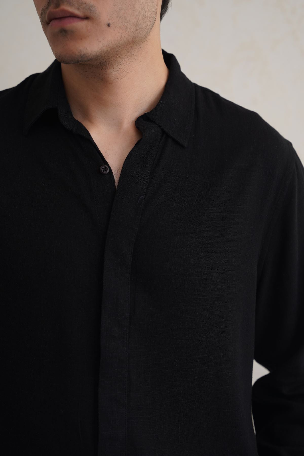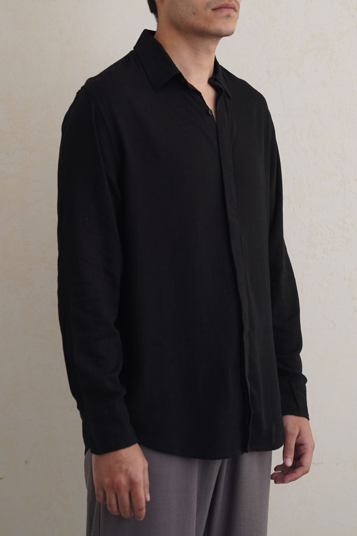 Design details: Full sleeves button down shirt with collar and front hidden placket detail.
