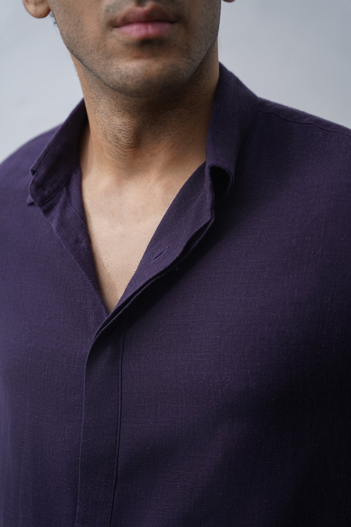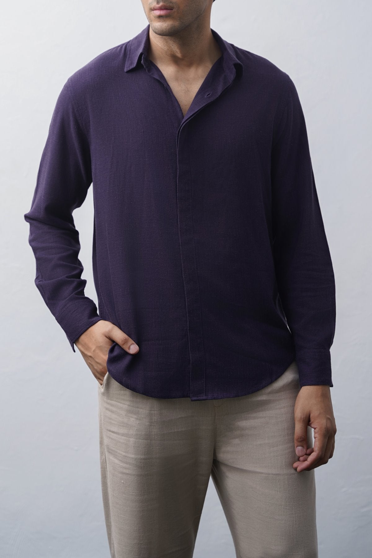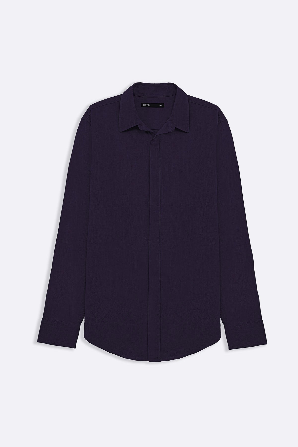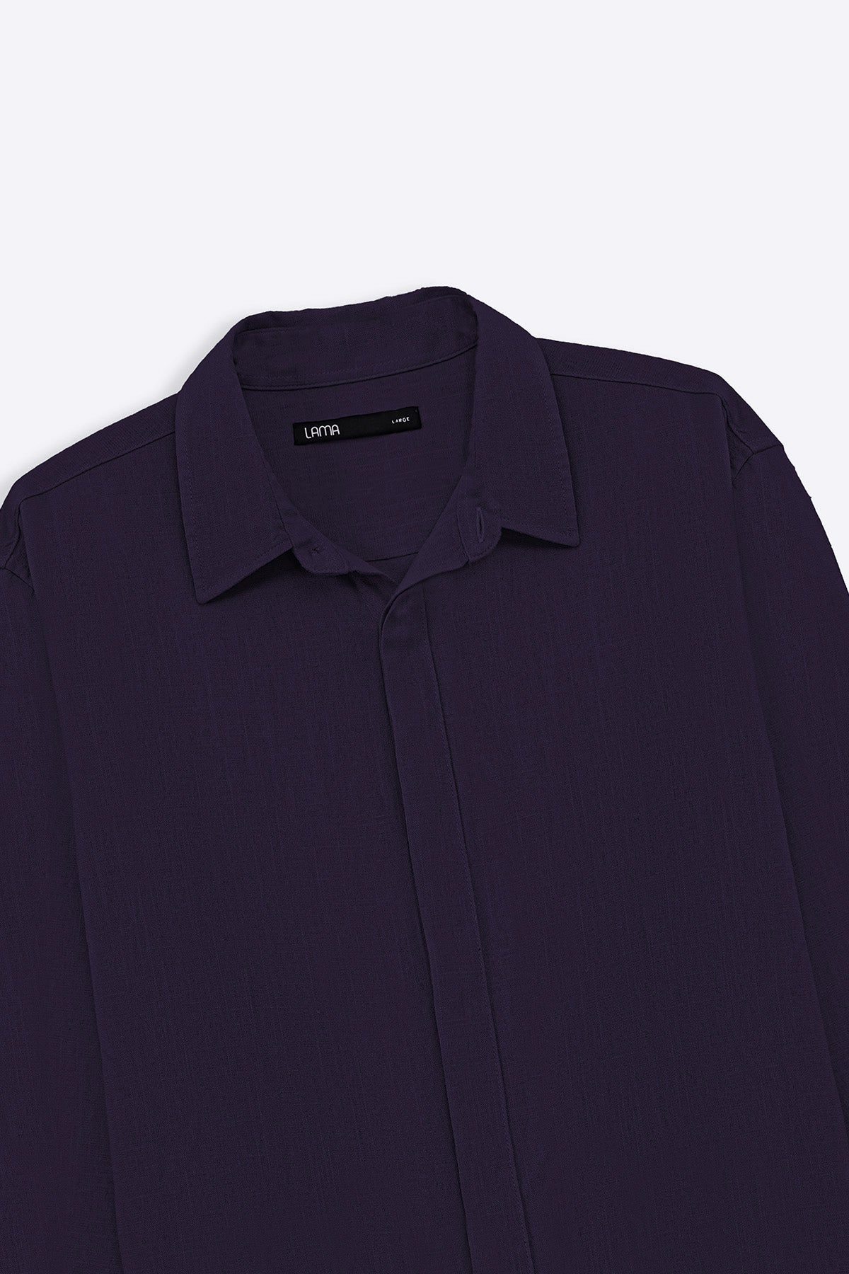 MELANGE NAVY SHIRT WITH HIDDEN PLACKET