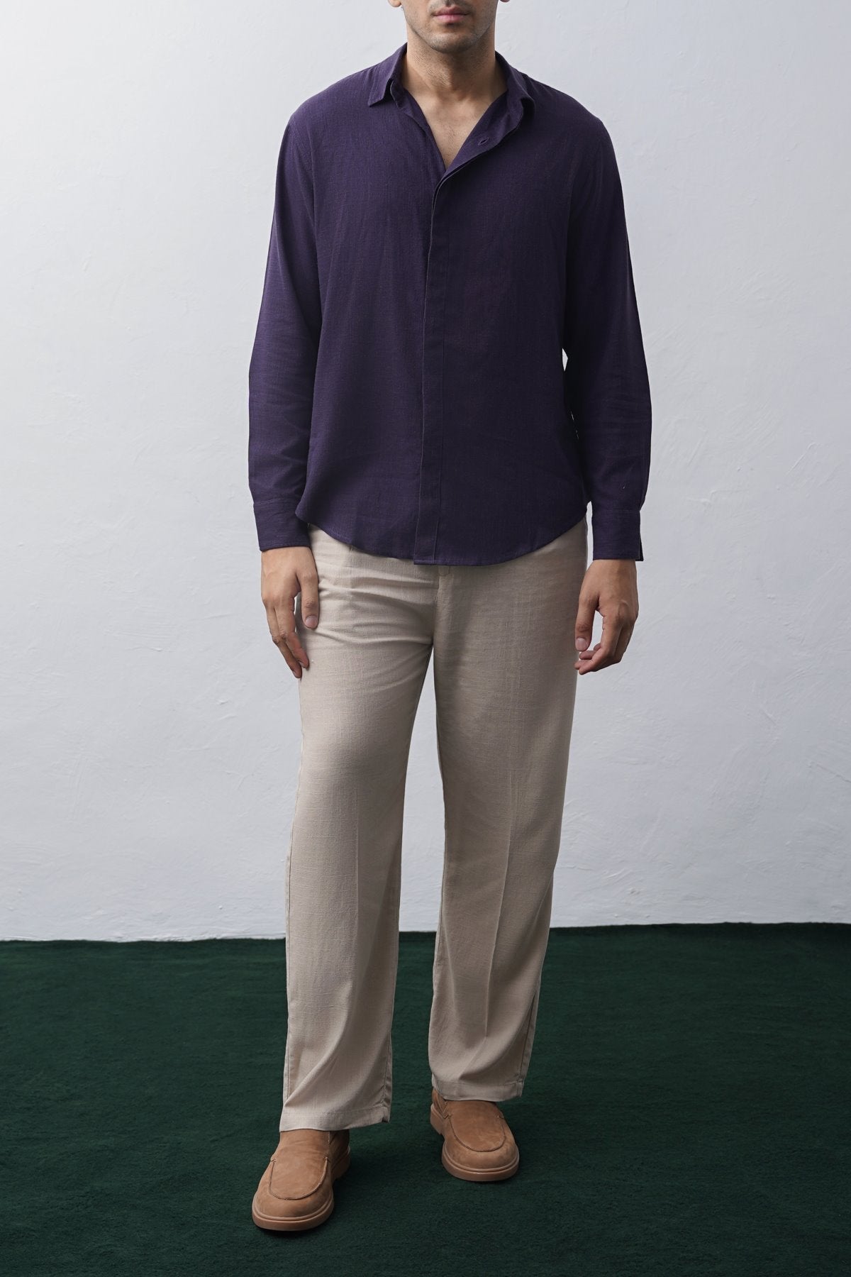 Design details: Full sleeves button down shirt with collar and front hidden placket detail.