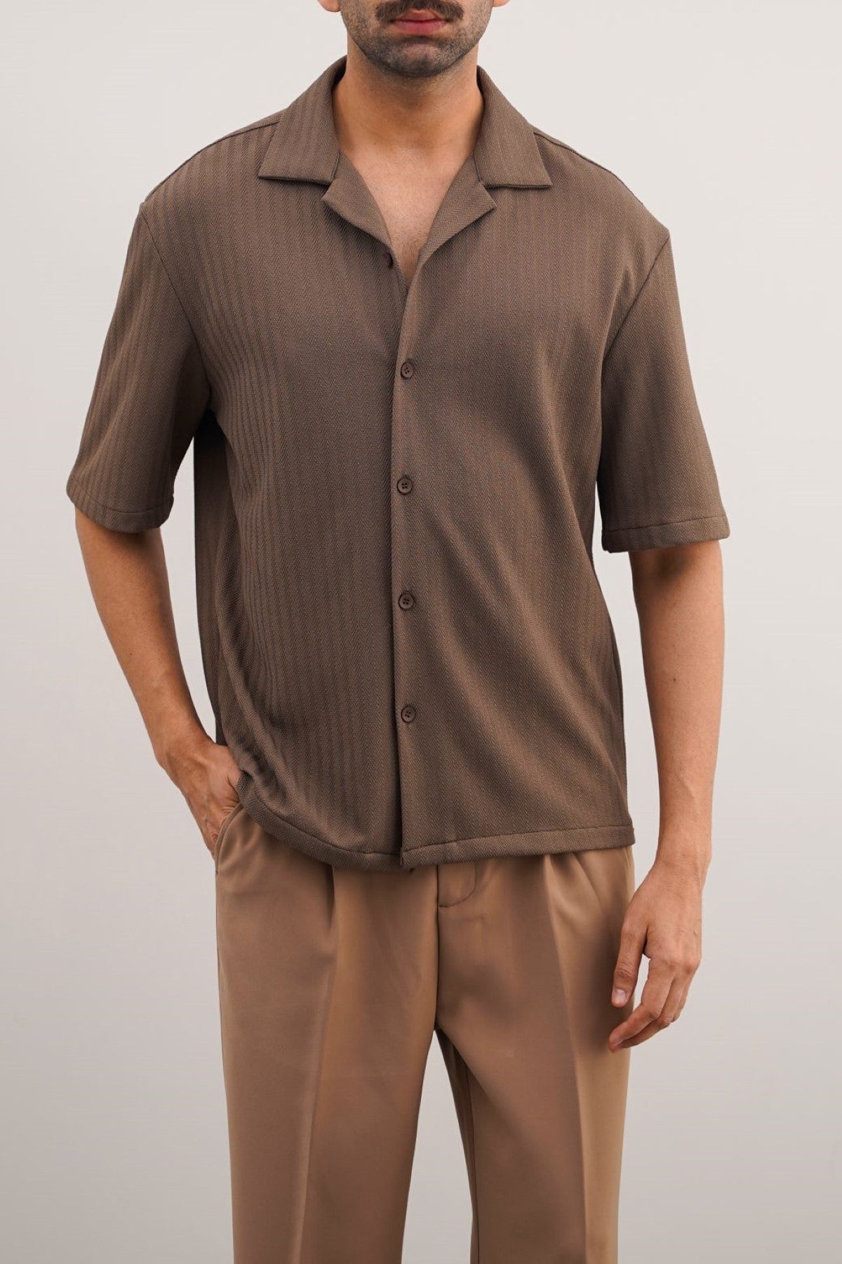 DARK BROWN TEXTURED SAFARI SHIRT