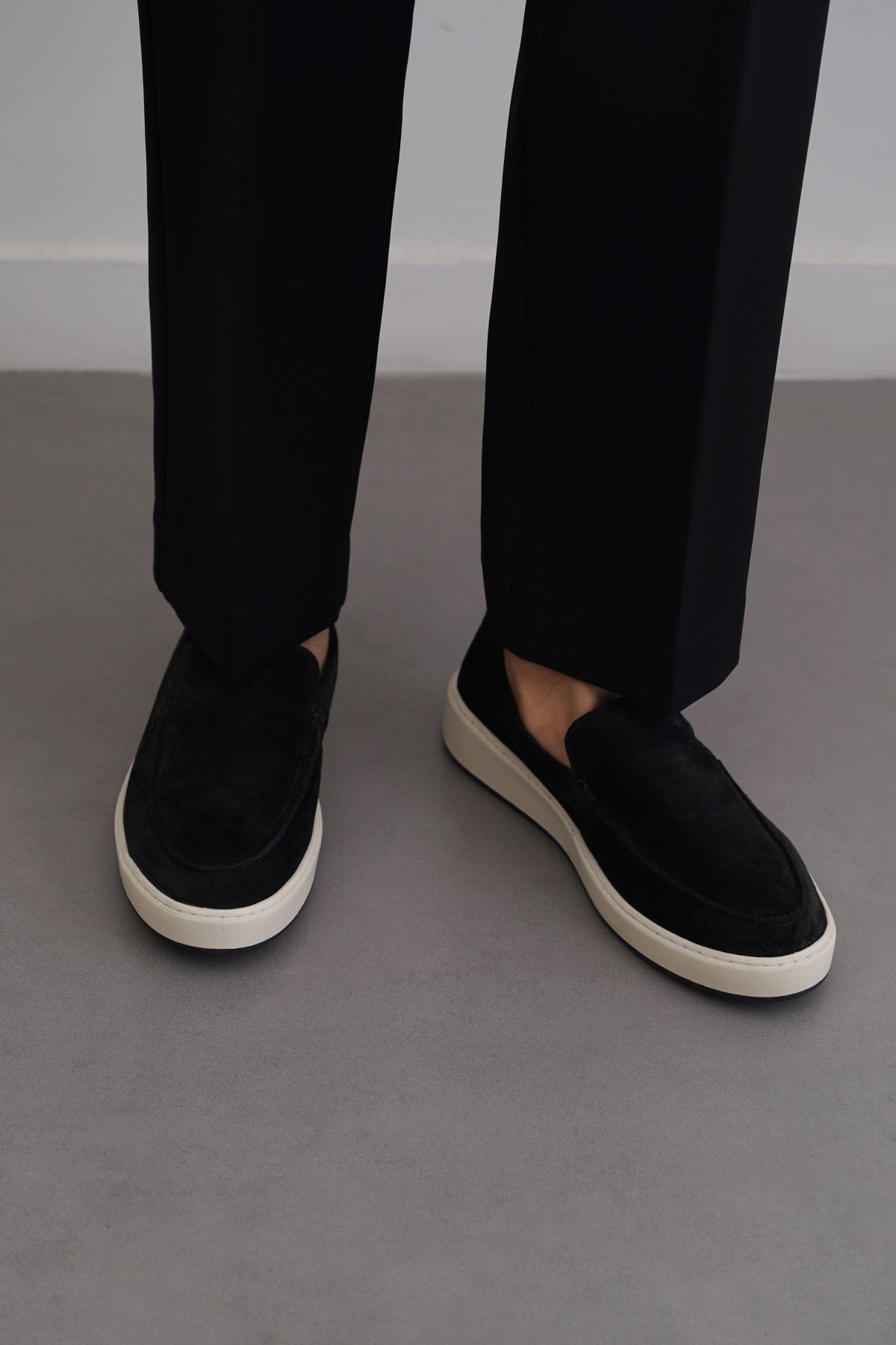 BLACK SUEDE LEATHER SLIP ON LOAFERS