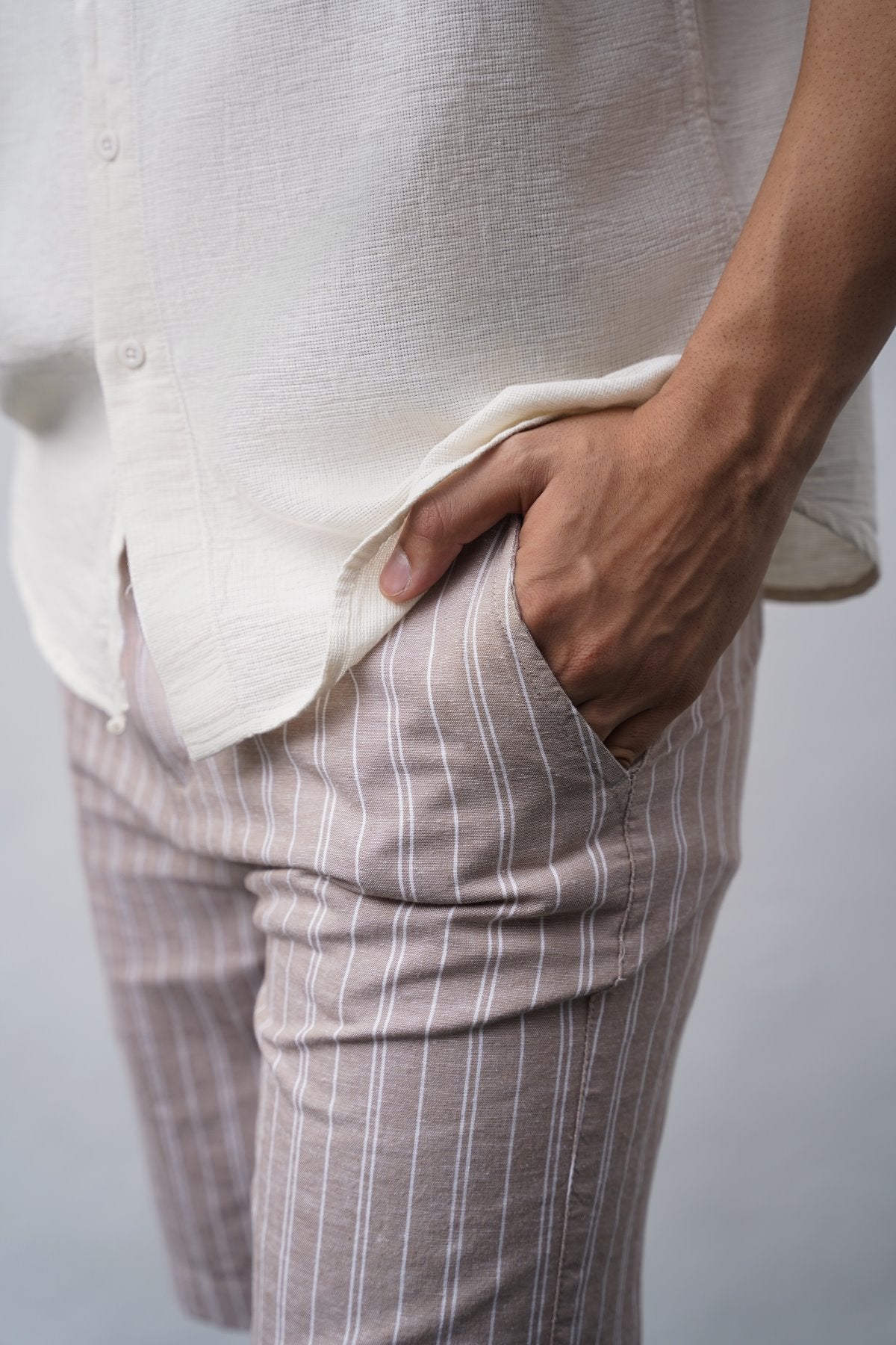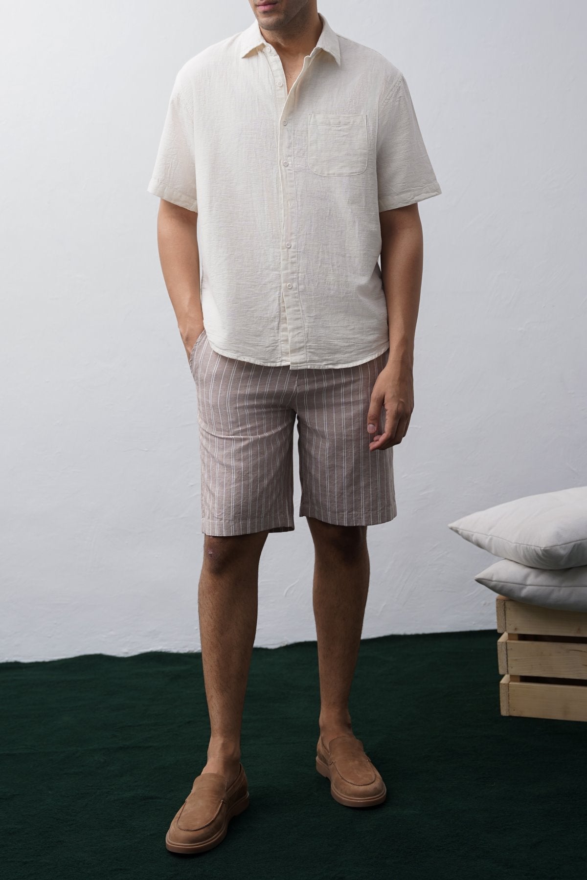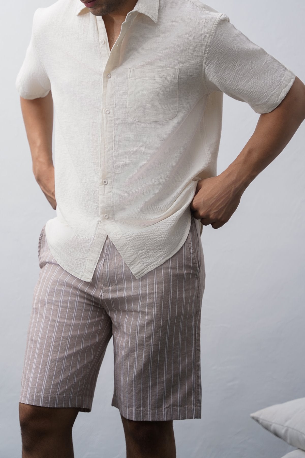 Design details: Striped shorts with a drawcord at the waistband. Cross pockets at the sides and a single bone pocket at the back.