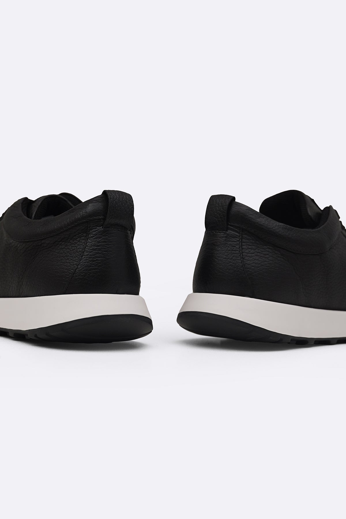 For stains, use a shoe cleaner with a damp cloth followed by shoe shiner or shoe polish.