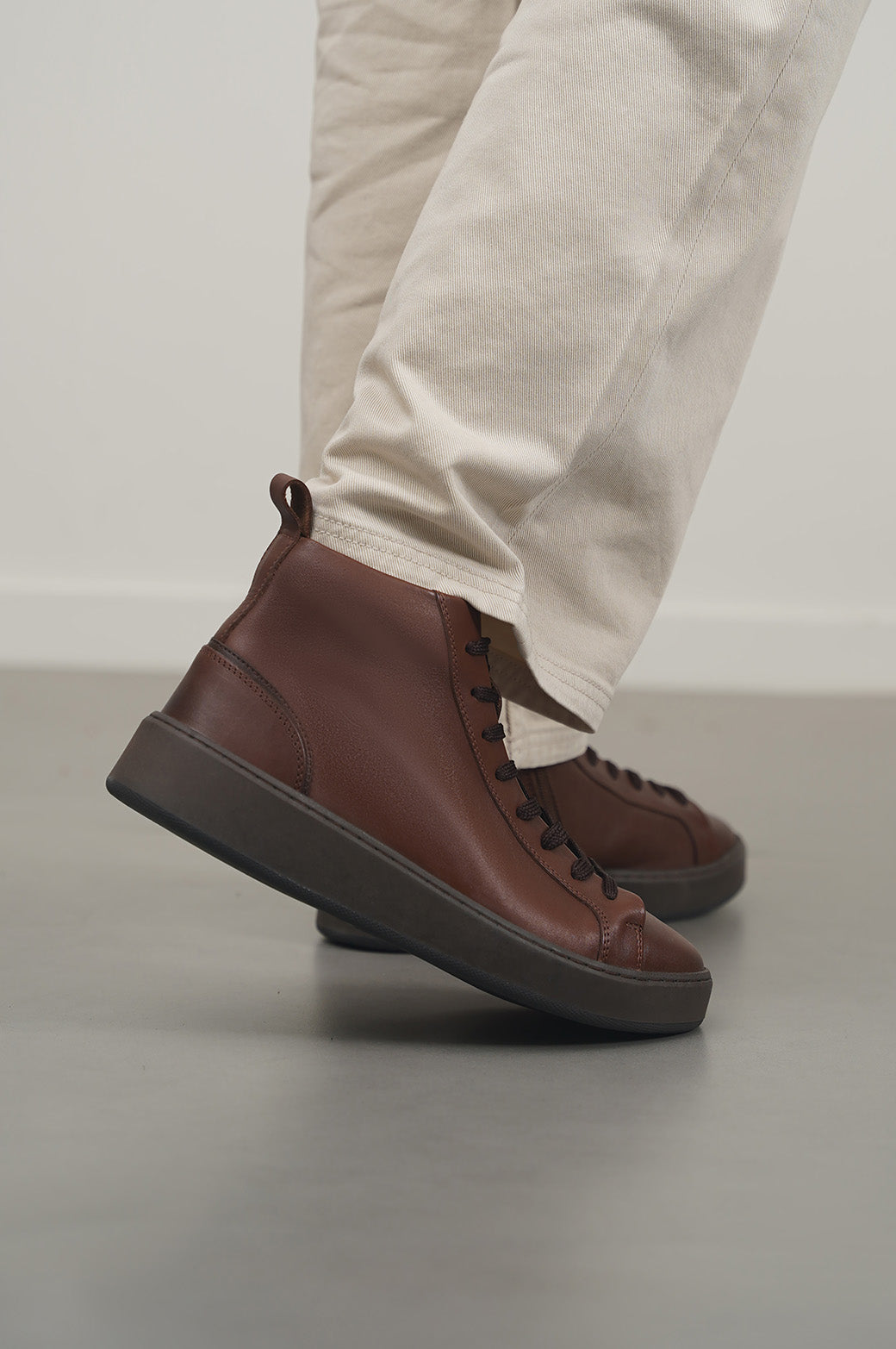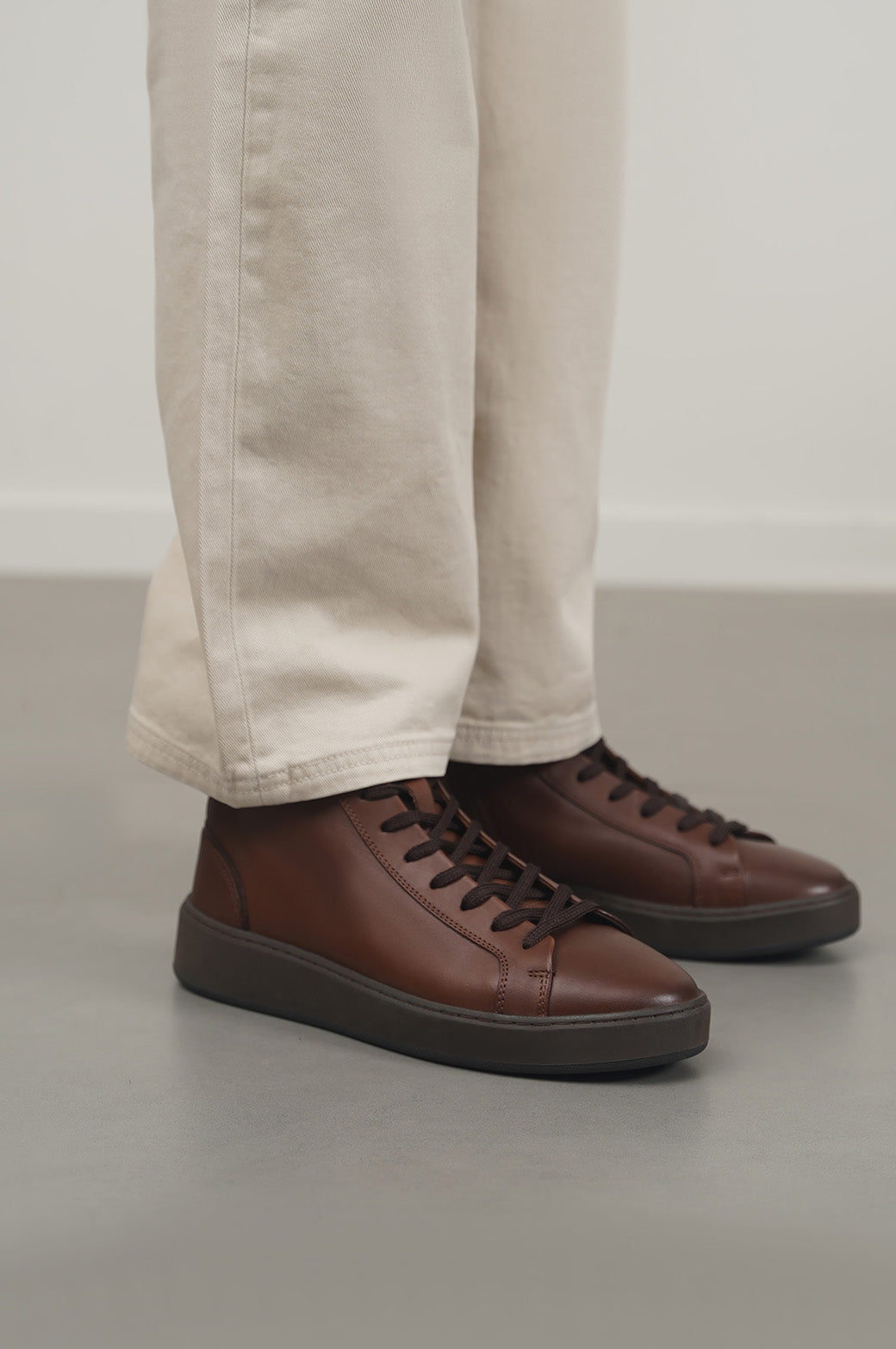 BROWN HIGH-TOP LEATHER SNEAKERS