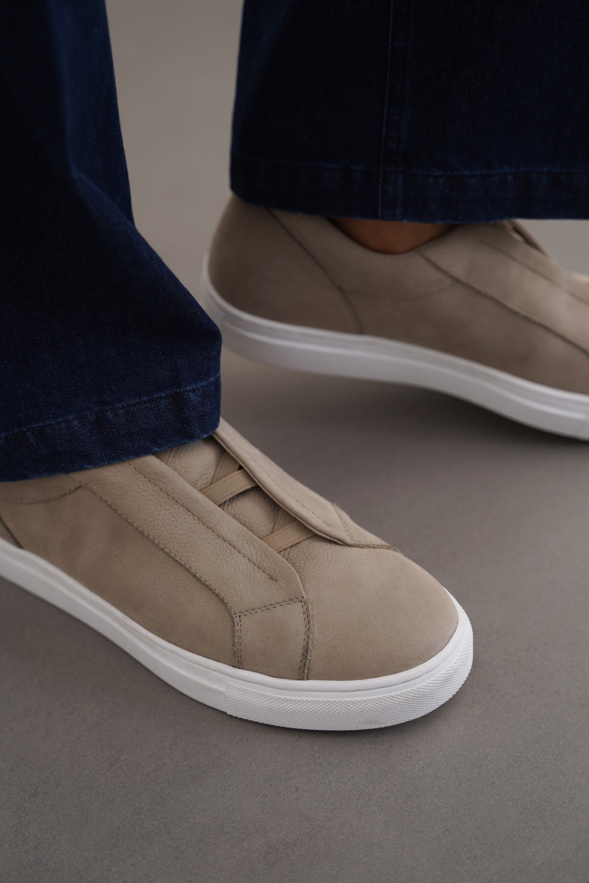 Design details: Comfortable Men’s slip-on leather sneakers, designed for ultimate comfort and versatility. Crafted from high-quality Nubuck Leather, these sneakers feature a minimalist design with a soft, breathable leather lining & insocks with a durable white TPR outsole for better grip. The slip-on style with Elasticated laces on the top ensures easy wear, making them a perfect blend of fashion and functionality.