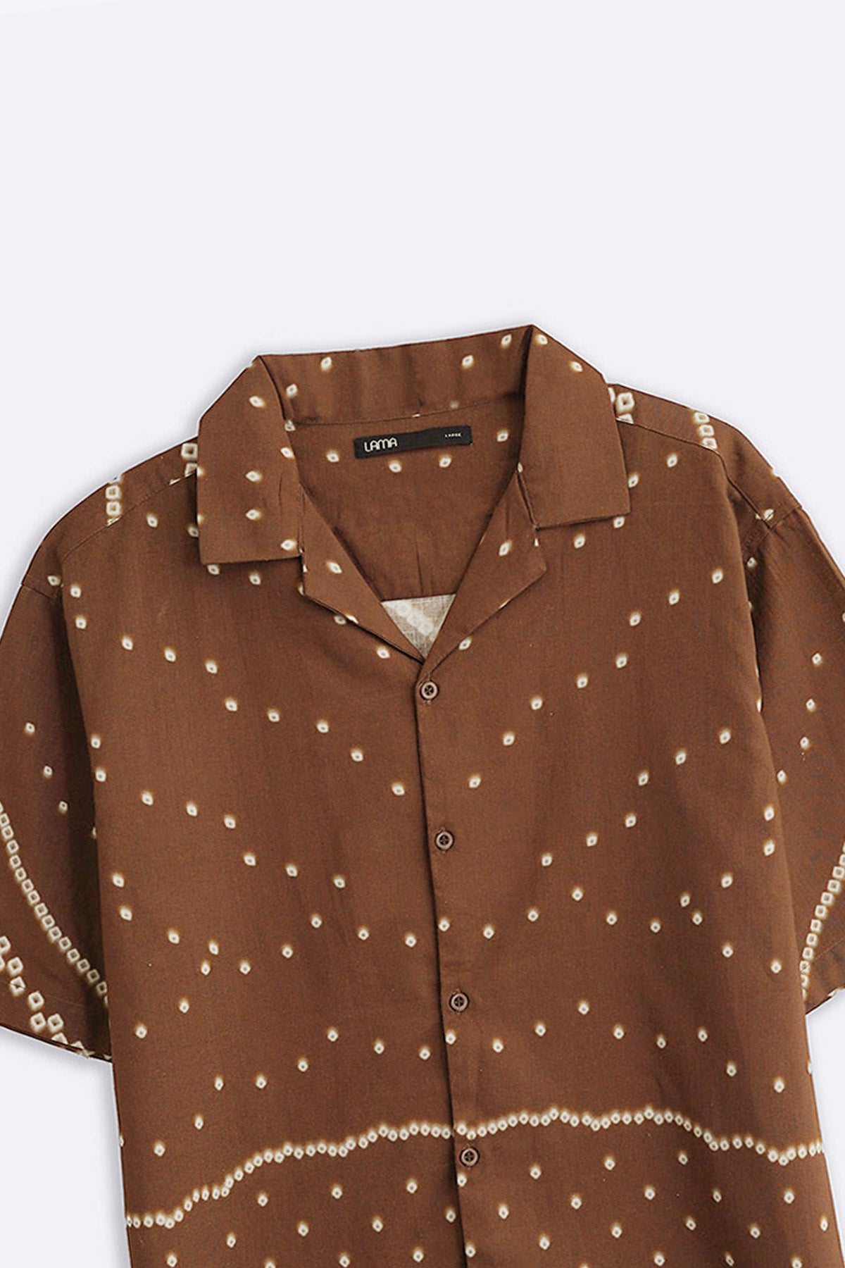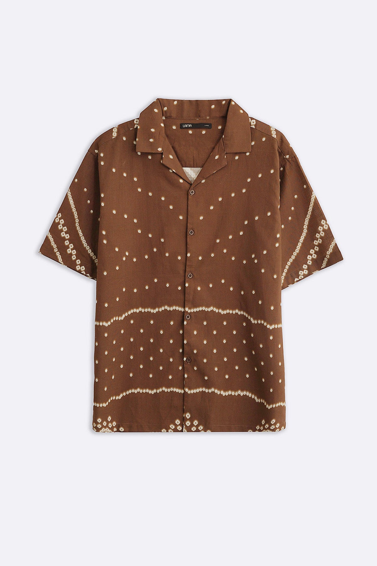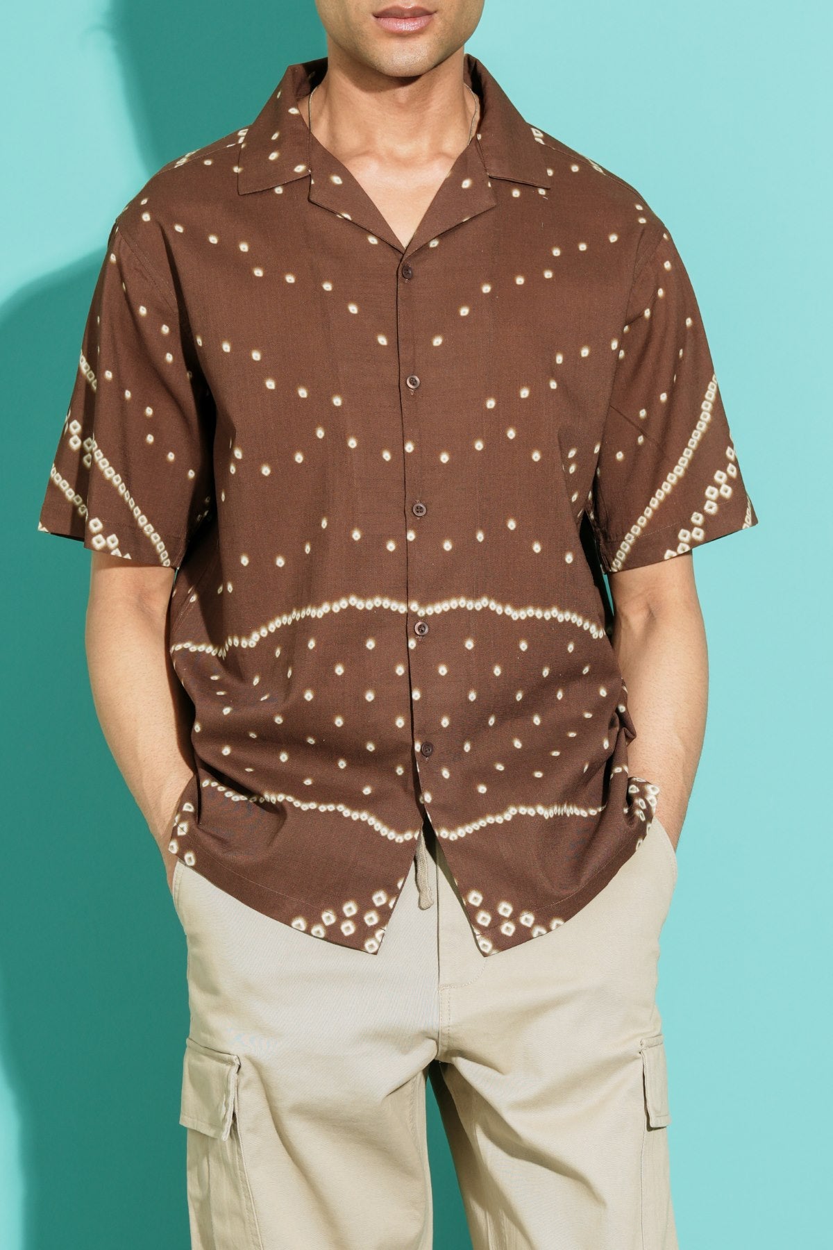 Design details: Printed half sleeves shirt with safari collar.