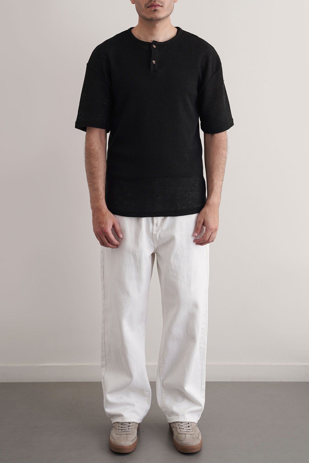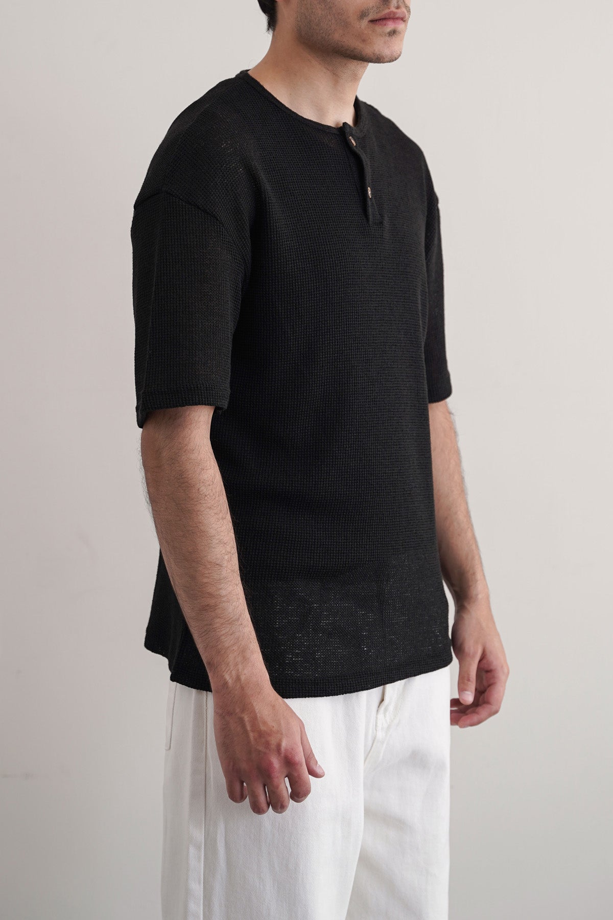 BLACK JACQUARD HENLEY