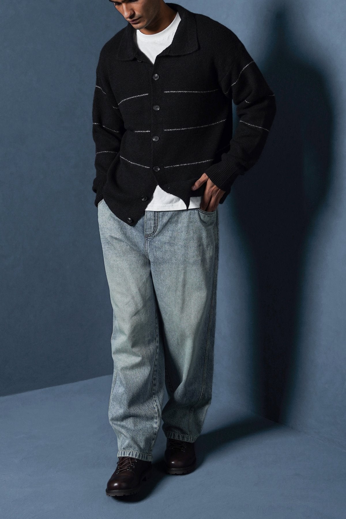 Design details: Cosy cardigan with long sleeves, front button fastening and contrasting stripe details.