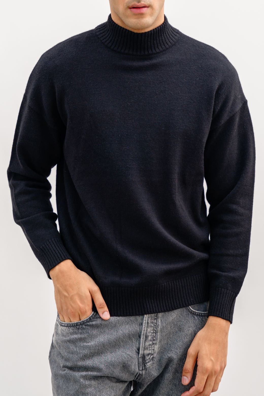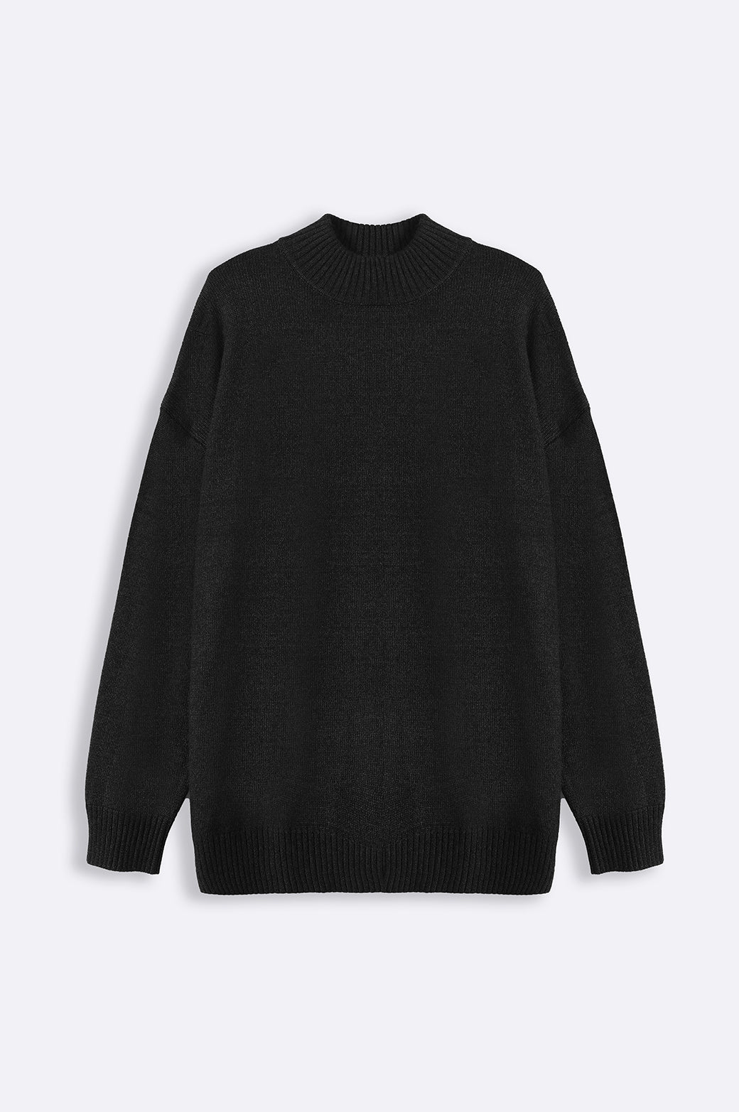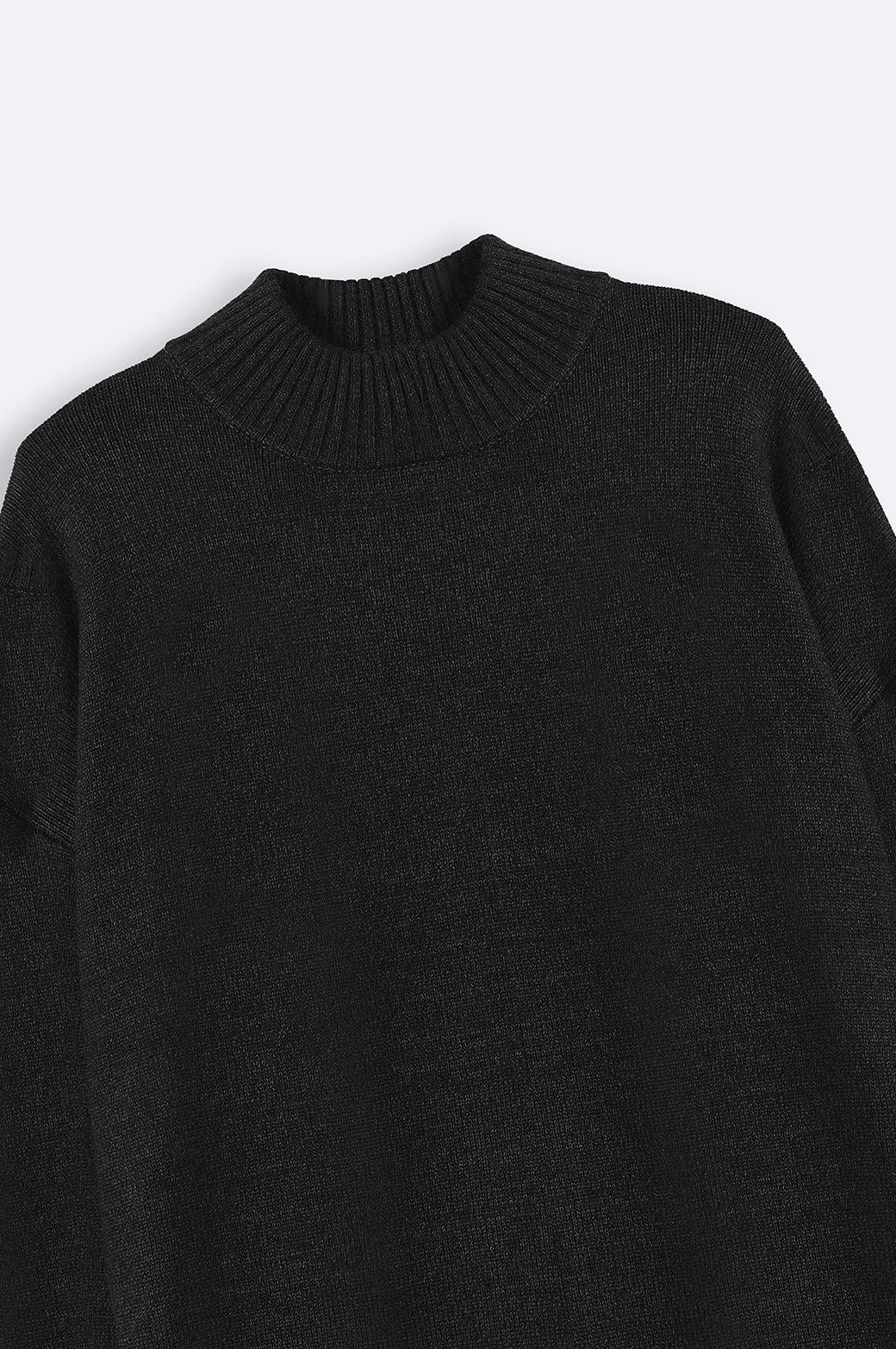 Design details: Mock neck sweater, Dropped shoulder with ribbed trim details