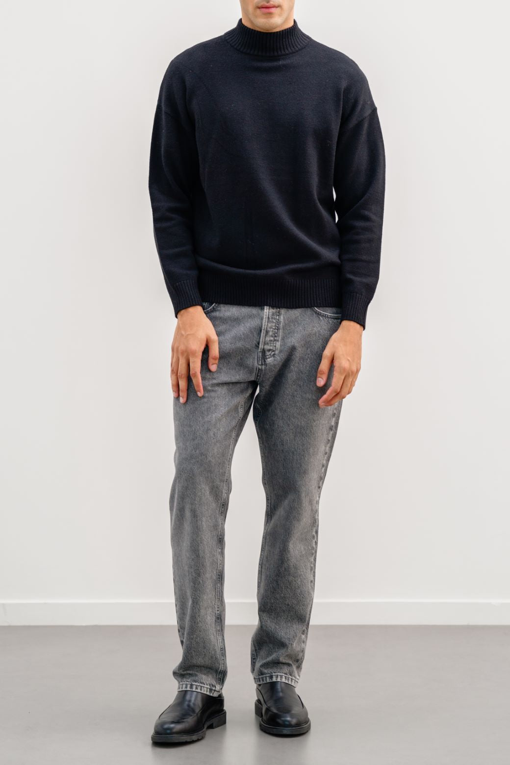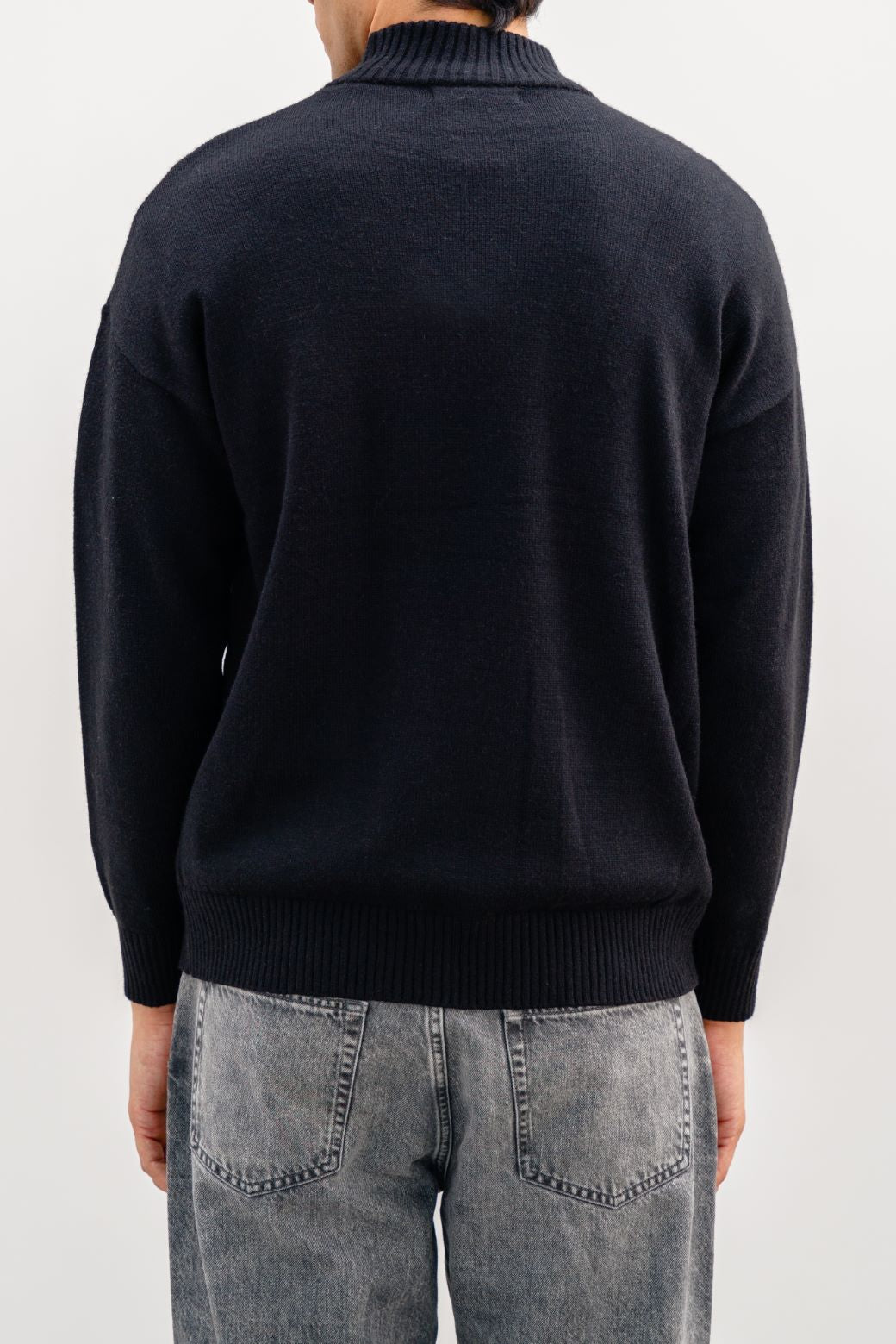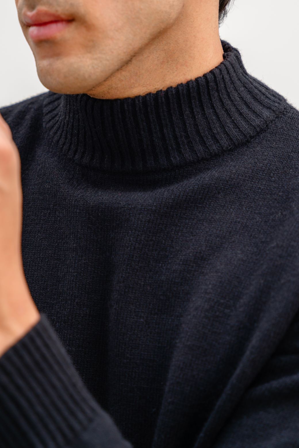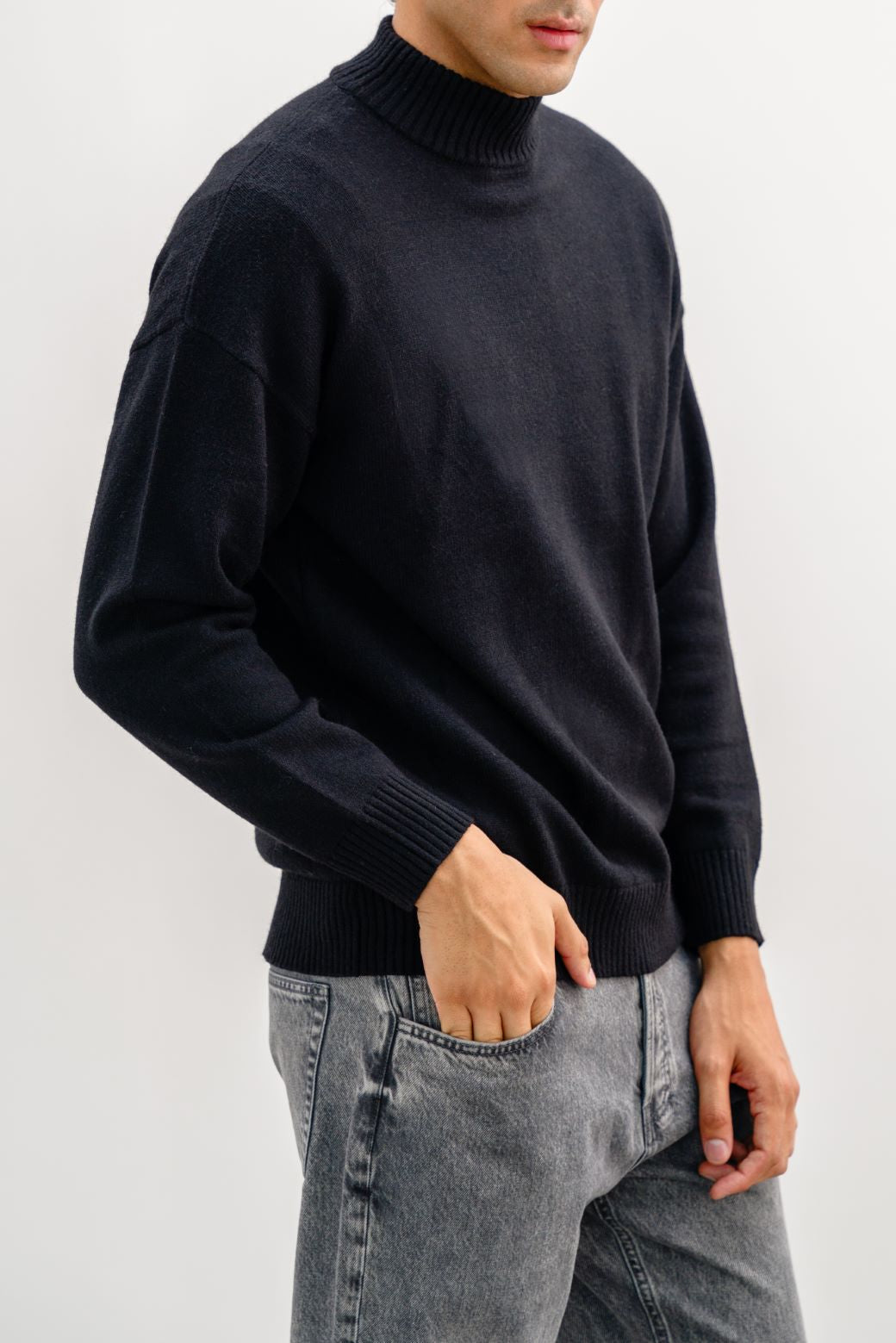 Design details: Mock neck sweater, Dropped shoulder with ribbed trim details