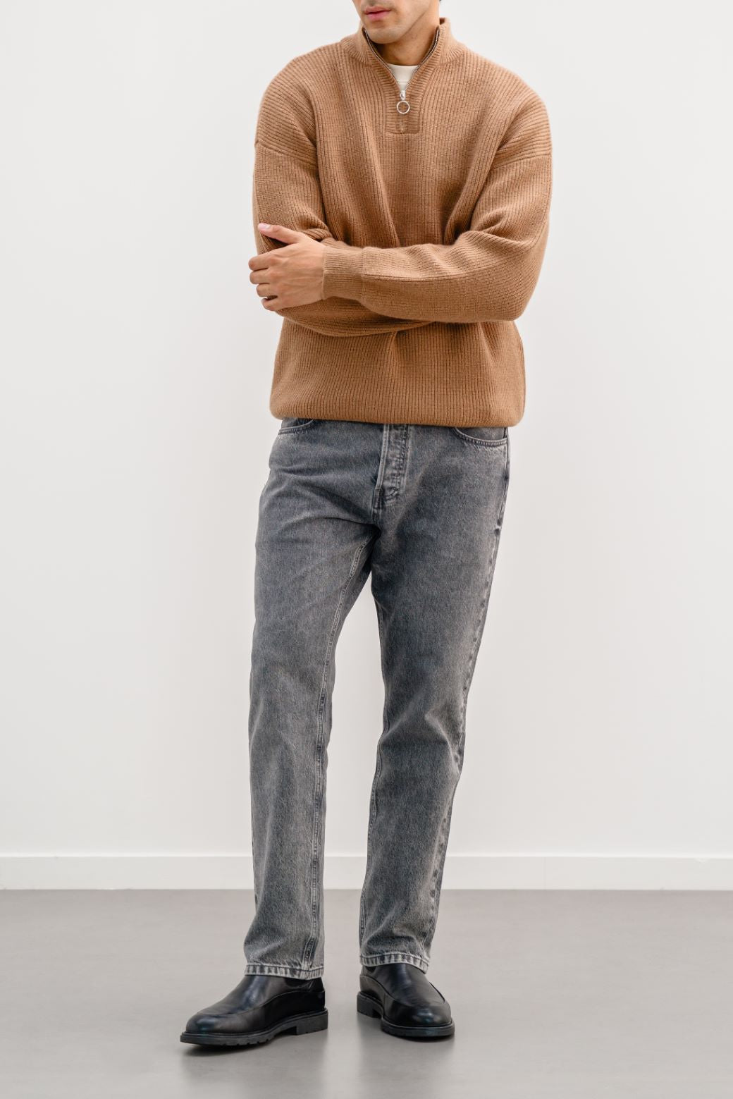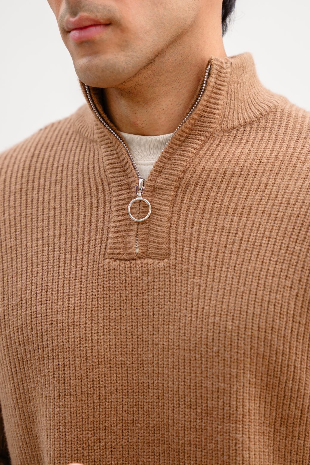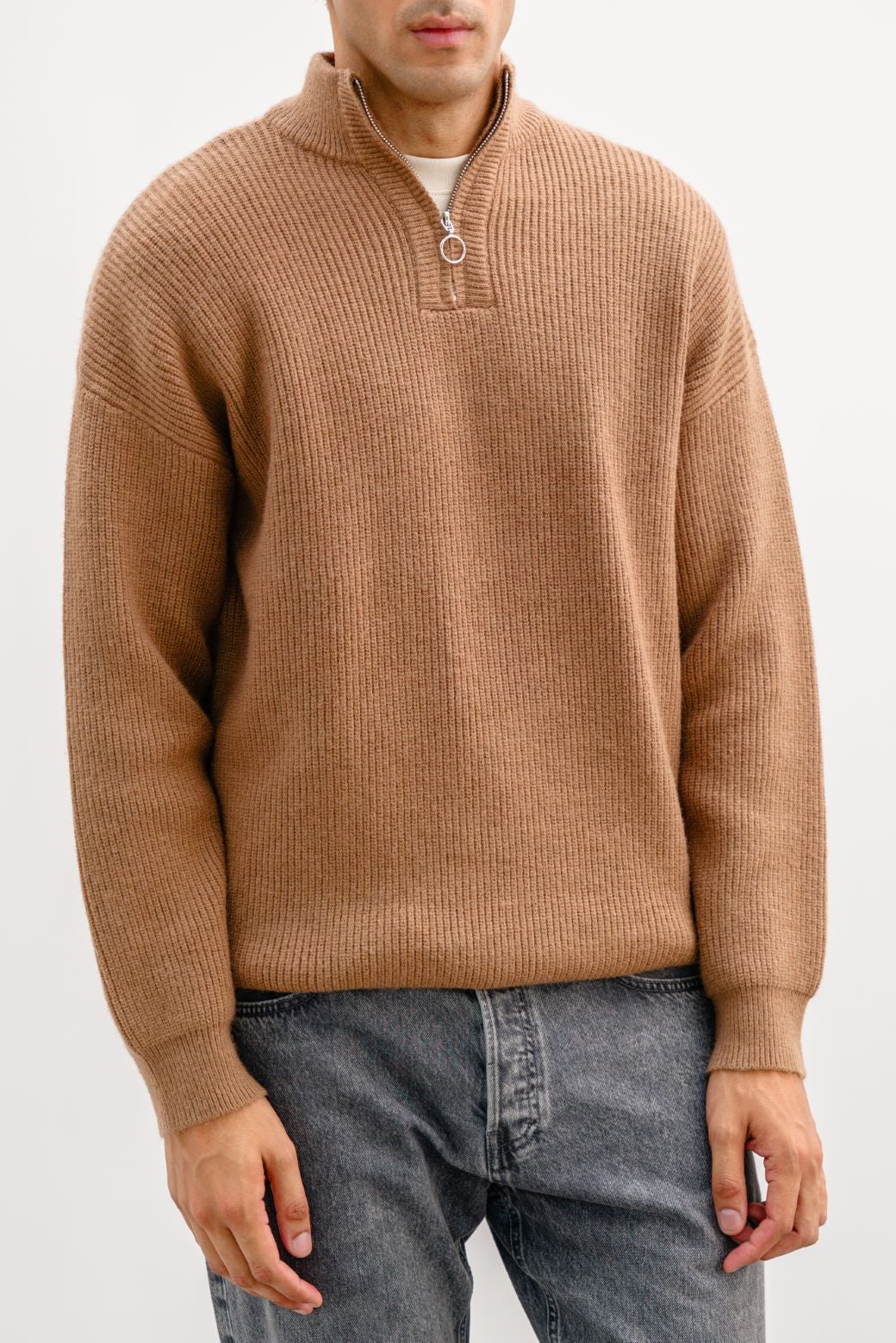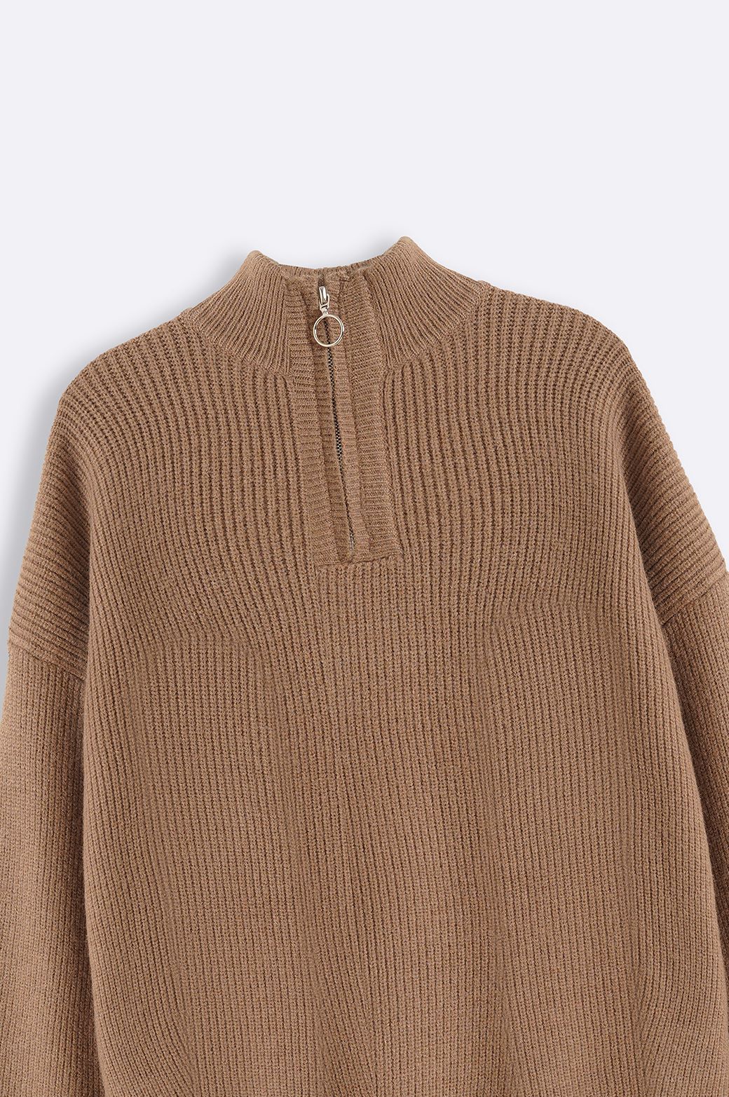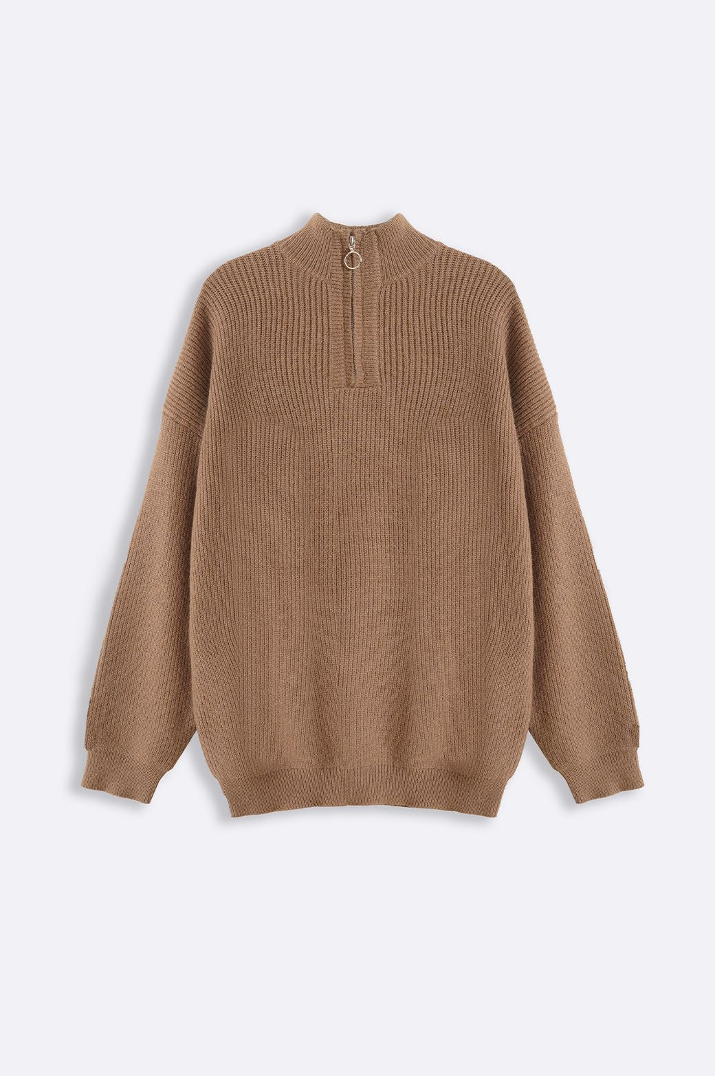 Design details: Super soft, mock neck sweater, Drop shoulder, long sleeves, zip fastening on high neck collar with ribbed trim details