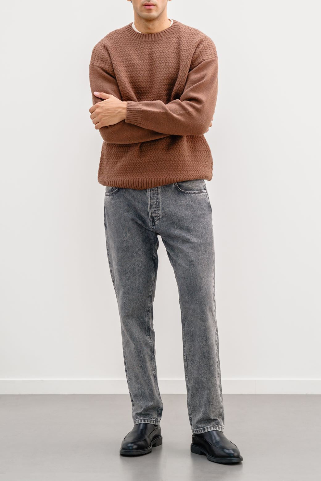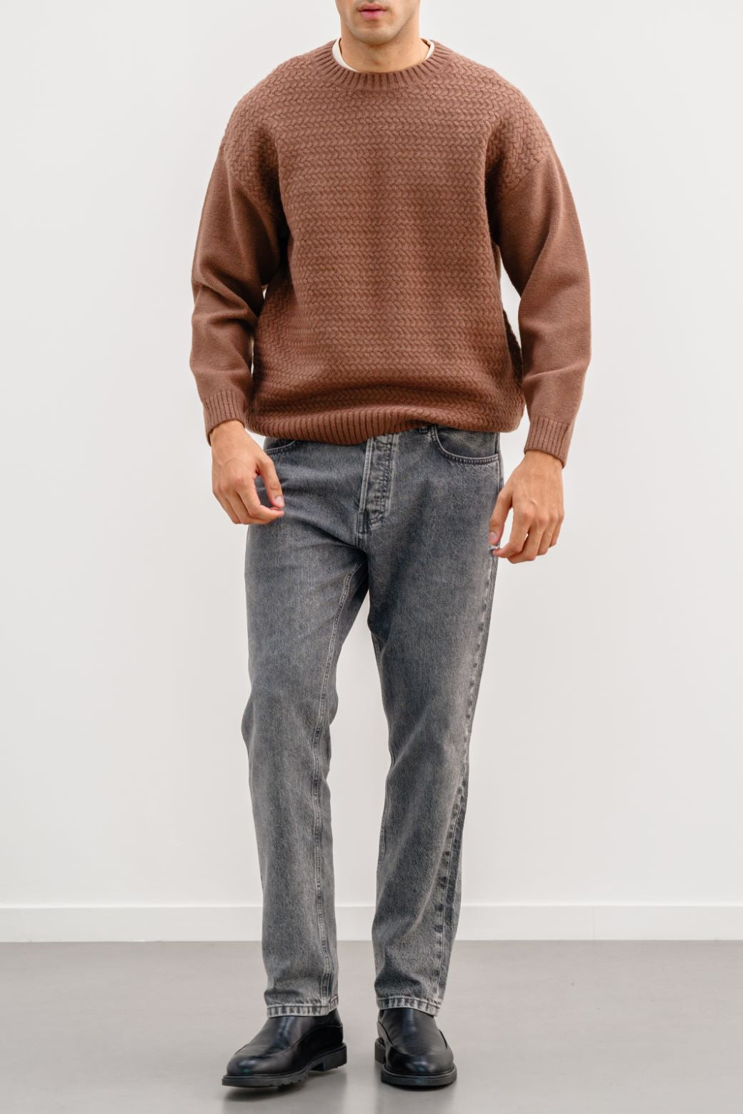 BROWN TEXTURED SWEATER