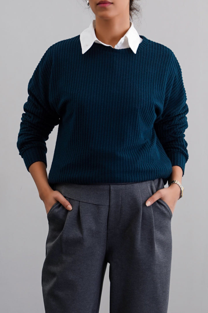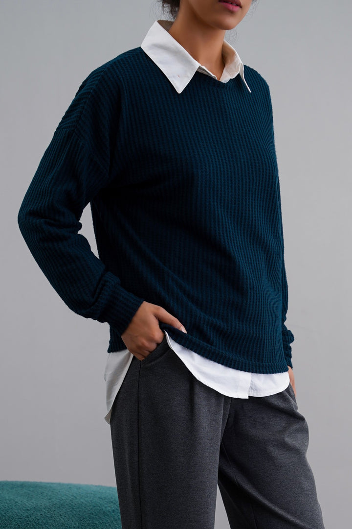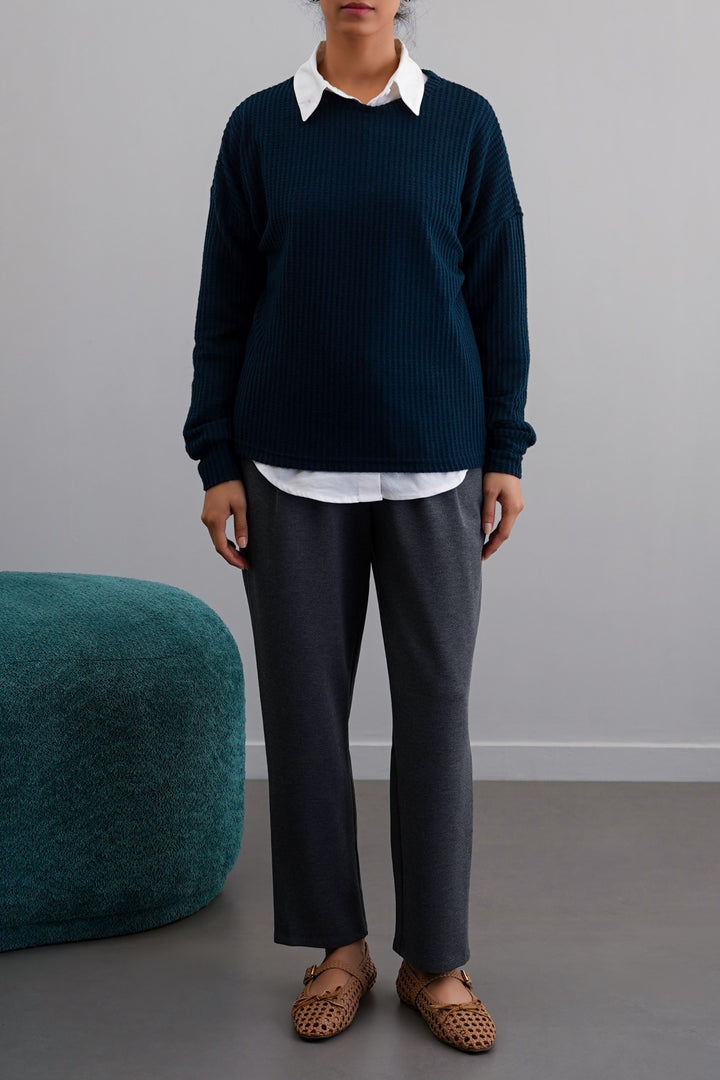Design details: Textured sweatshirt featuring crew neck and long sleeves