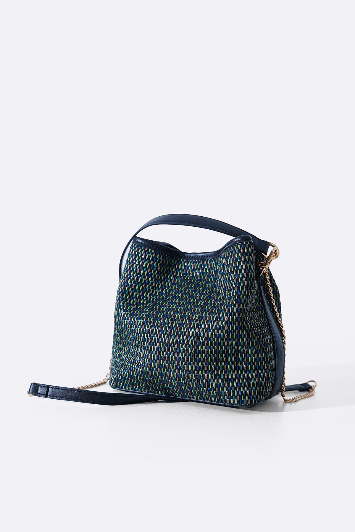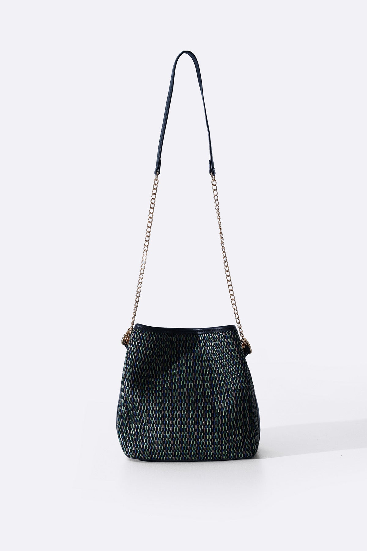 Textured cross body bag which comes with two straps; the longer strap is adjustable and detachable as well. It comes with two compartments to hold your belongings