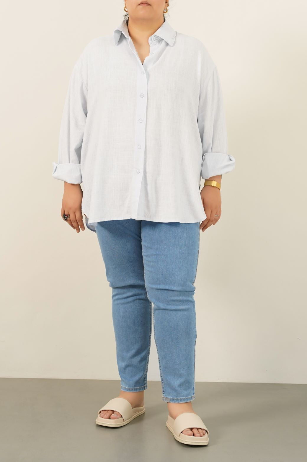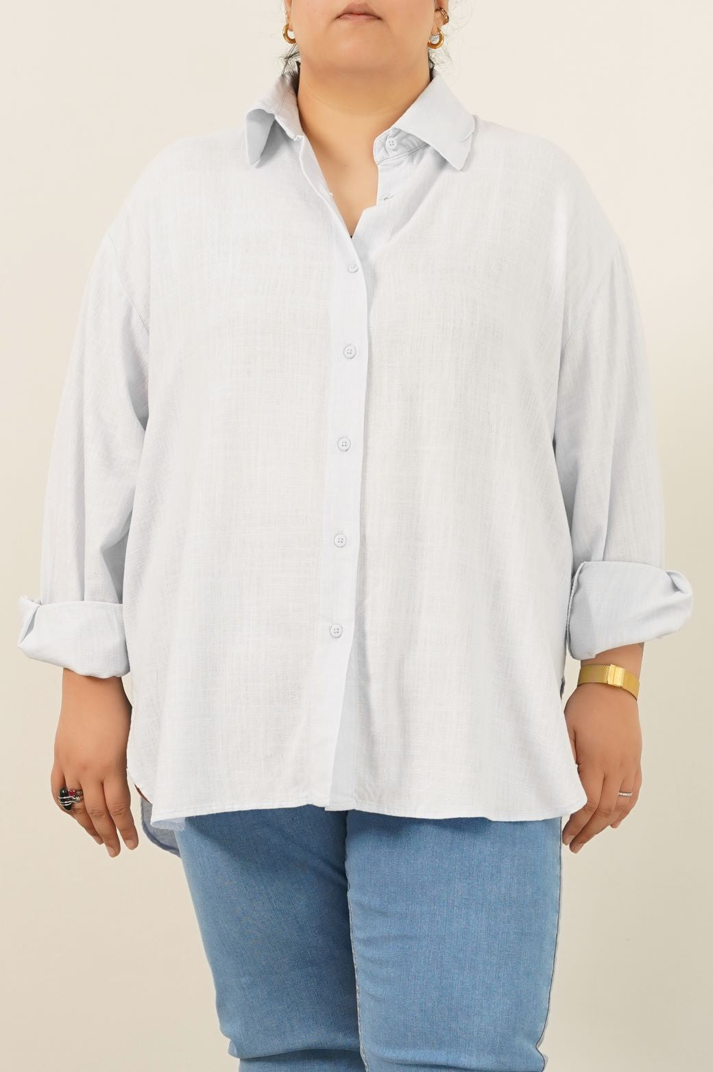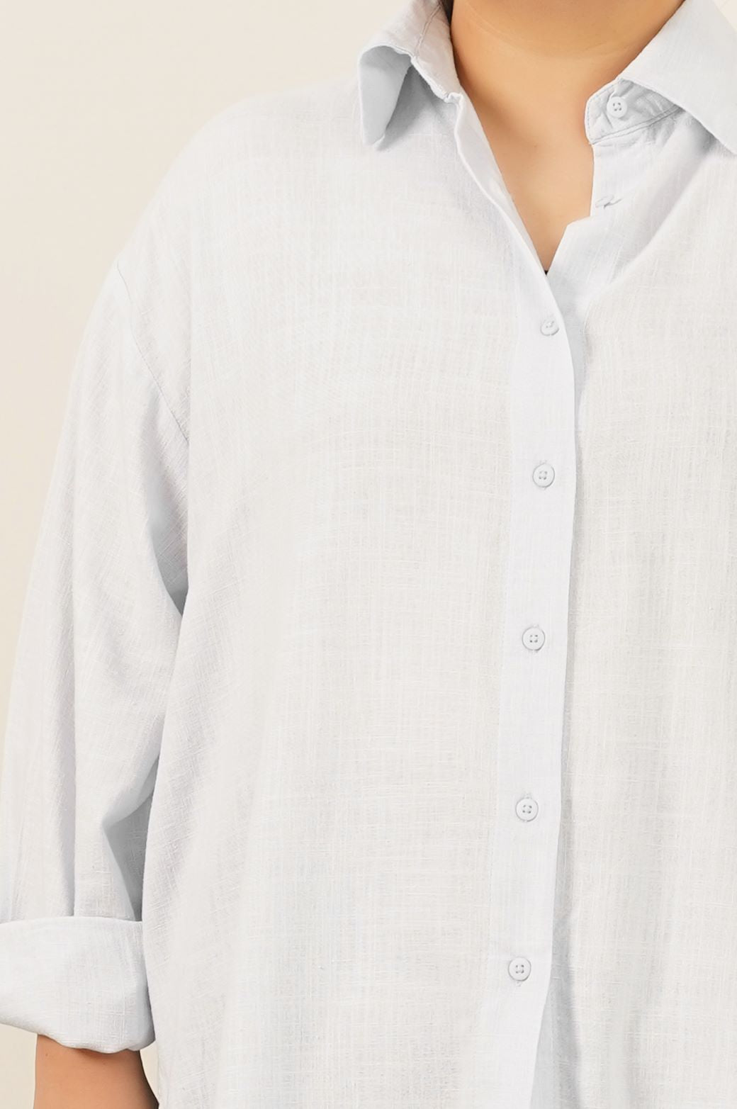 Design details: Basic button-down shirt with long sleeves with buttoned cuffs. Back pleat and yoke detail.