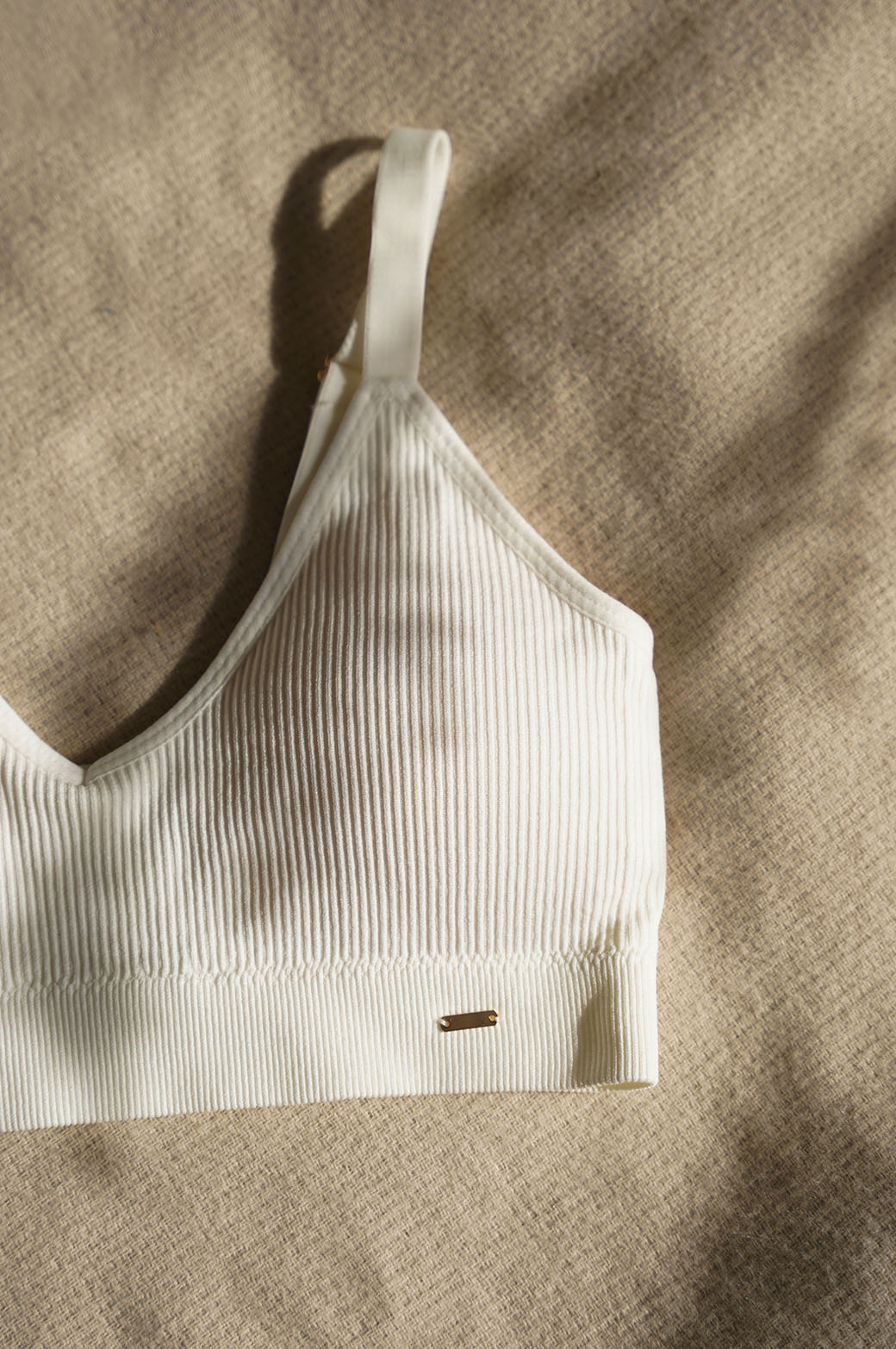 Design details: Soft, luxe, lightly padded bralette with tiny gold embellishment and plunge V neck. Adjustable straps.