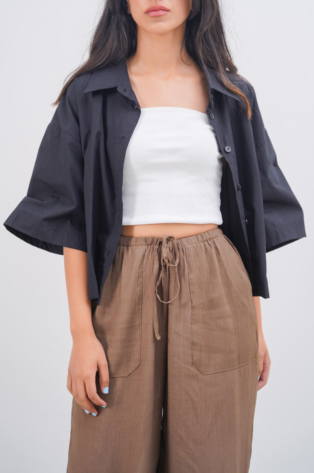 Size: The model is 157.48 cm/5'2" and wears a size SMALL
