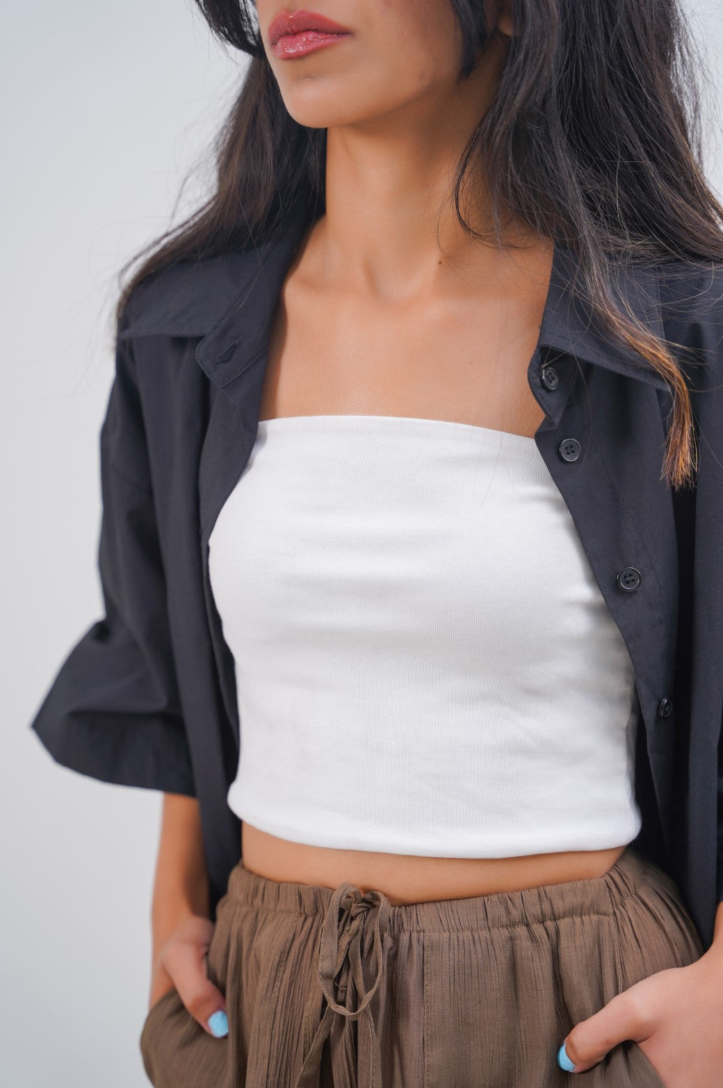 WHITE LONG BANDEAU