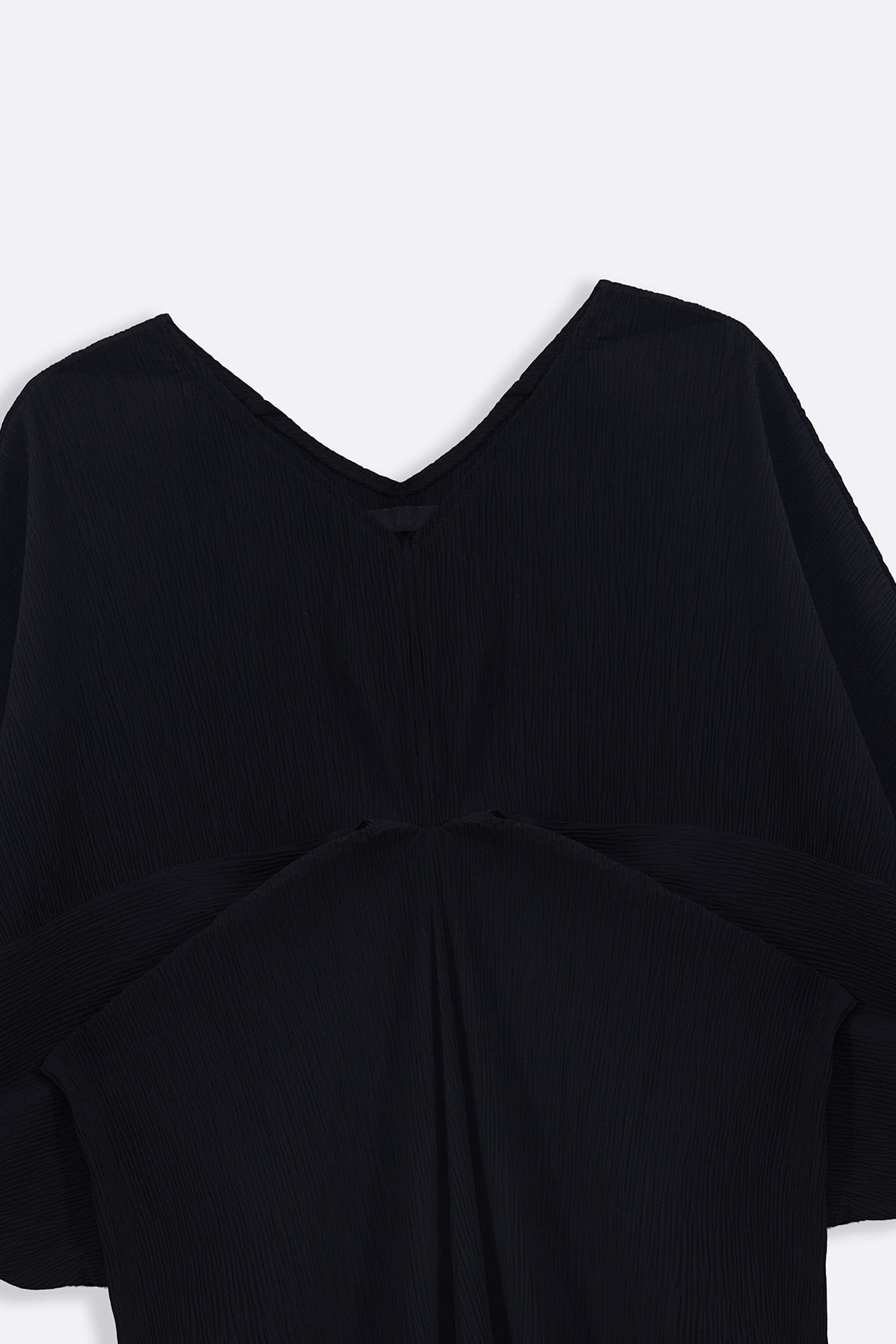 Design details: Evening dress crafted from Crinkle fabric, featuring a cinched front waist with draping and a V neckline