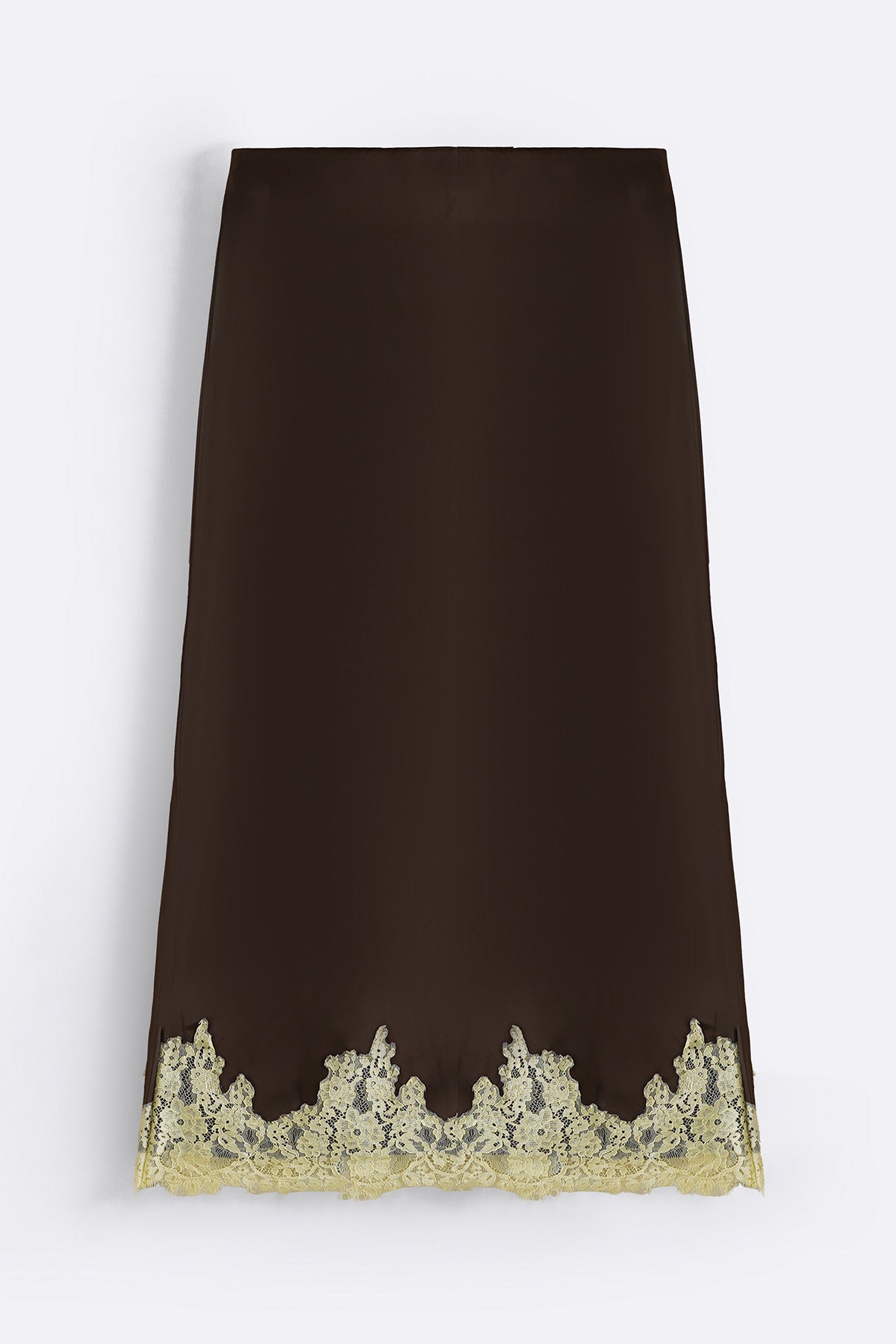 Design details: Midi skirt with lace trim at bottom and a hidden elasticated waistband.