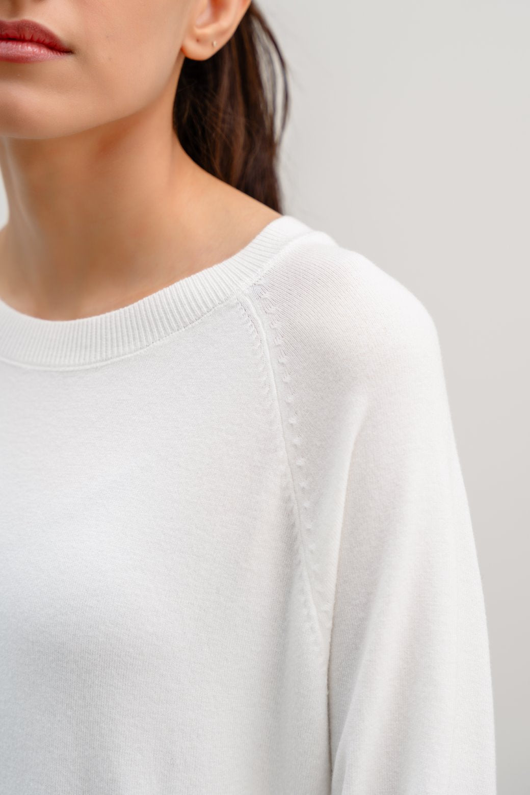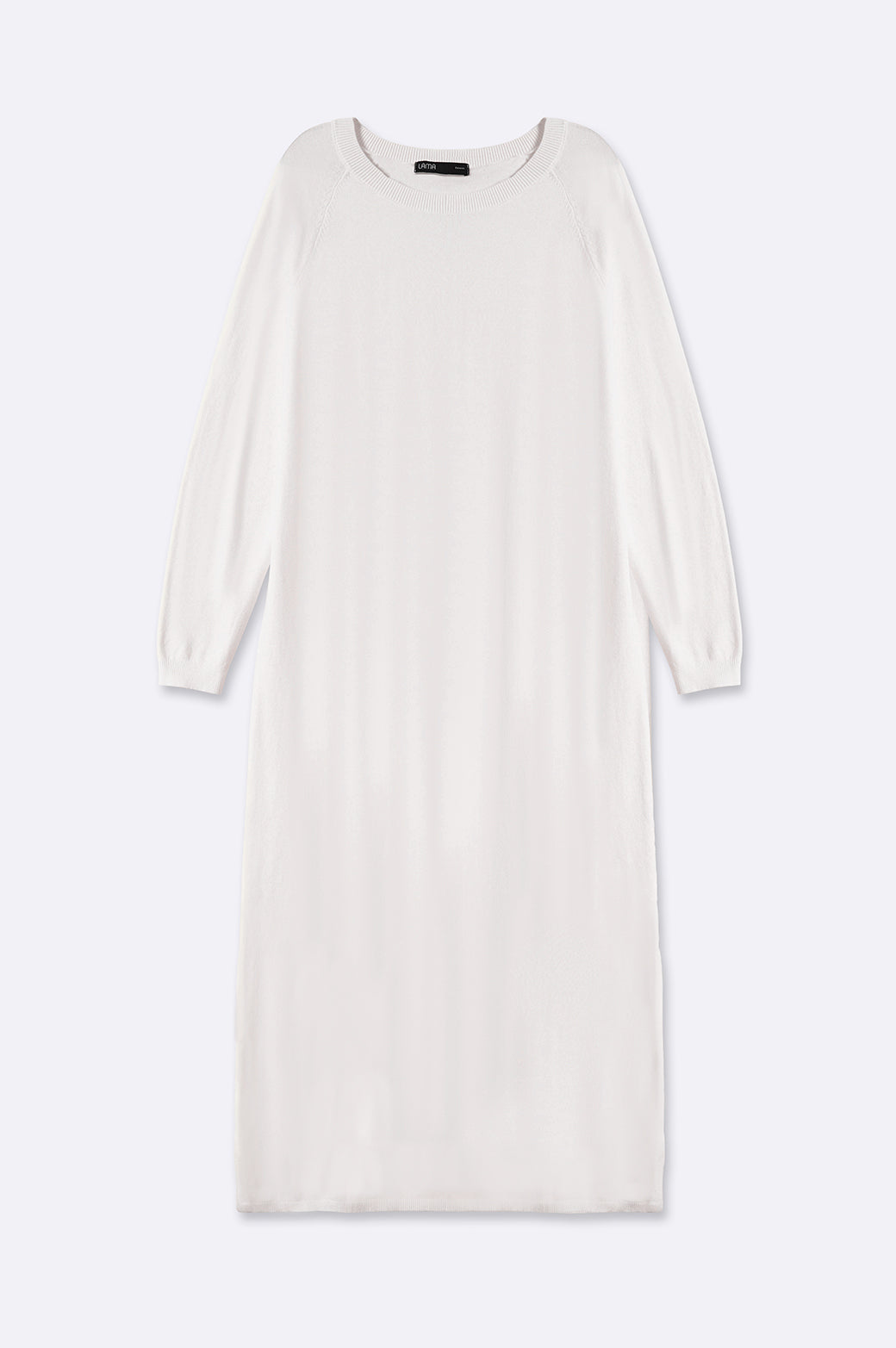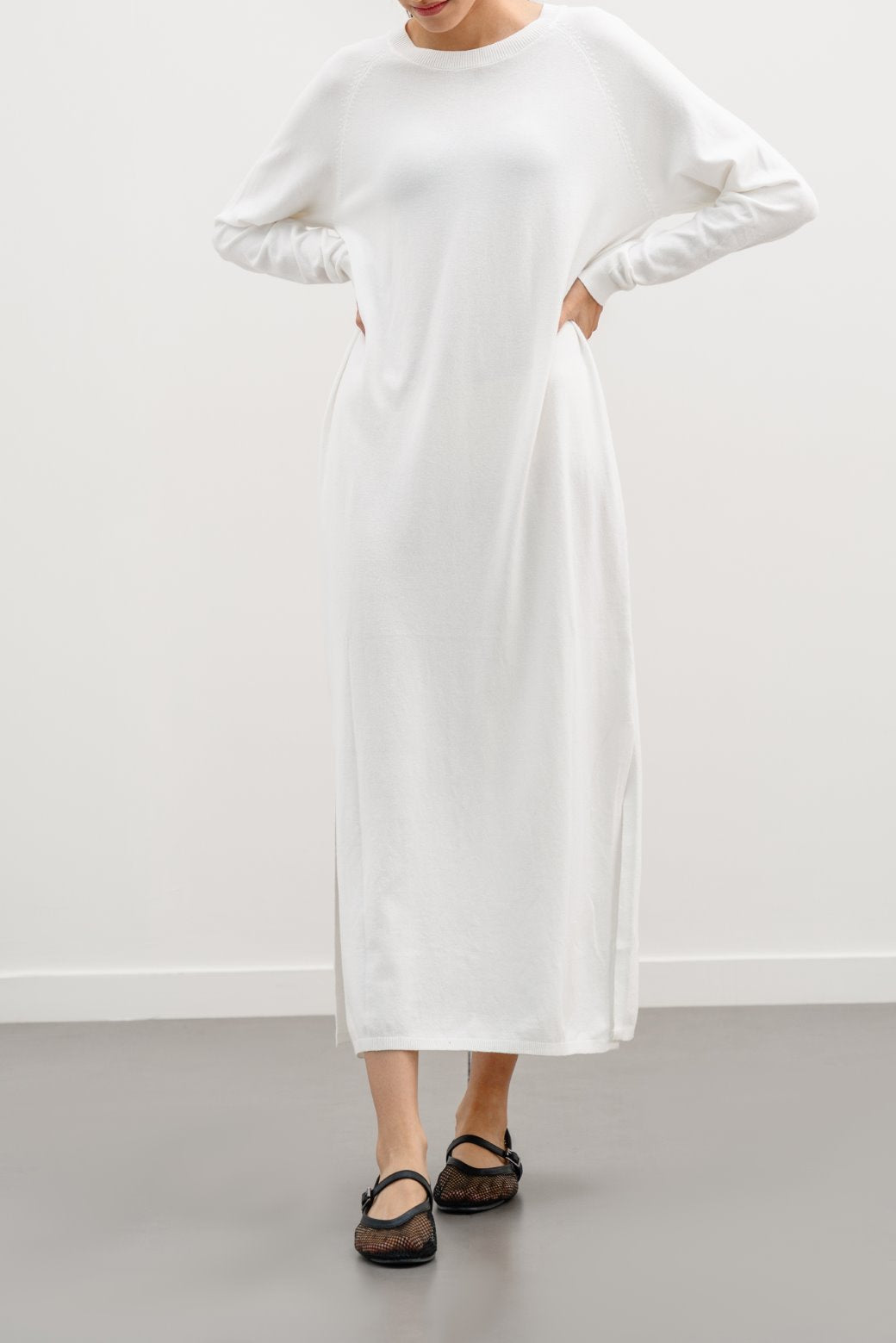 Design details: Crew neck long dress with long sleeves featuring side slits