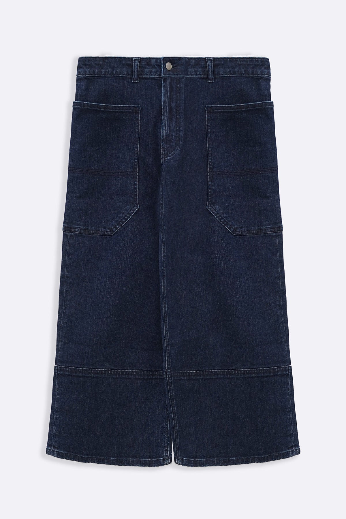 Design details: High rise cropped jeans with a front to back extended pocket detail, zip fly and metal button closure.