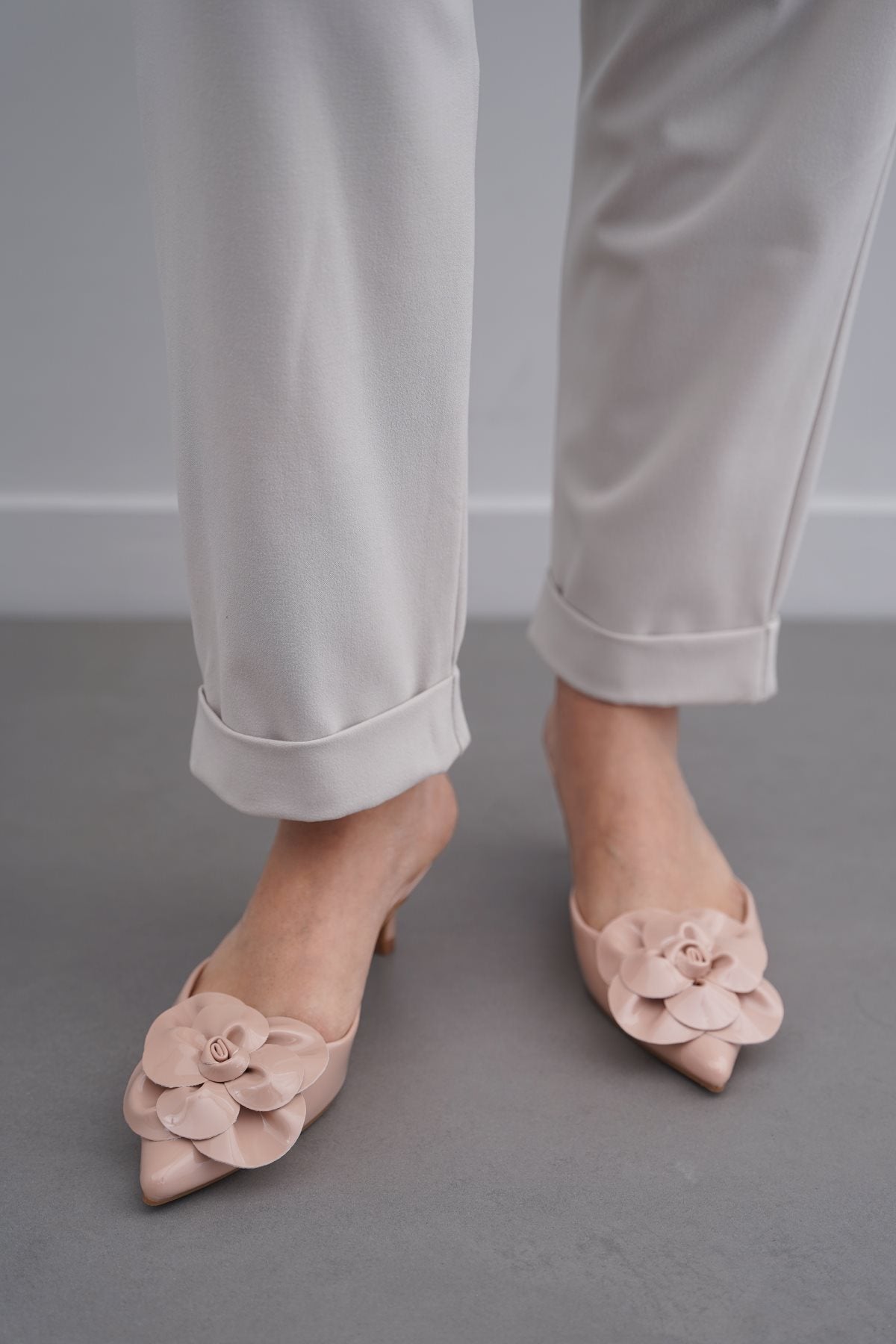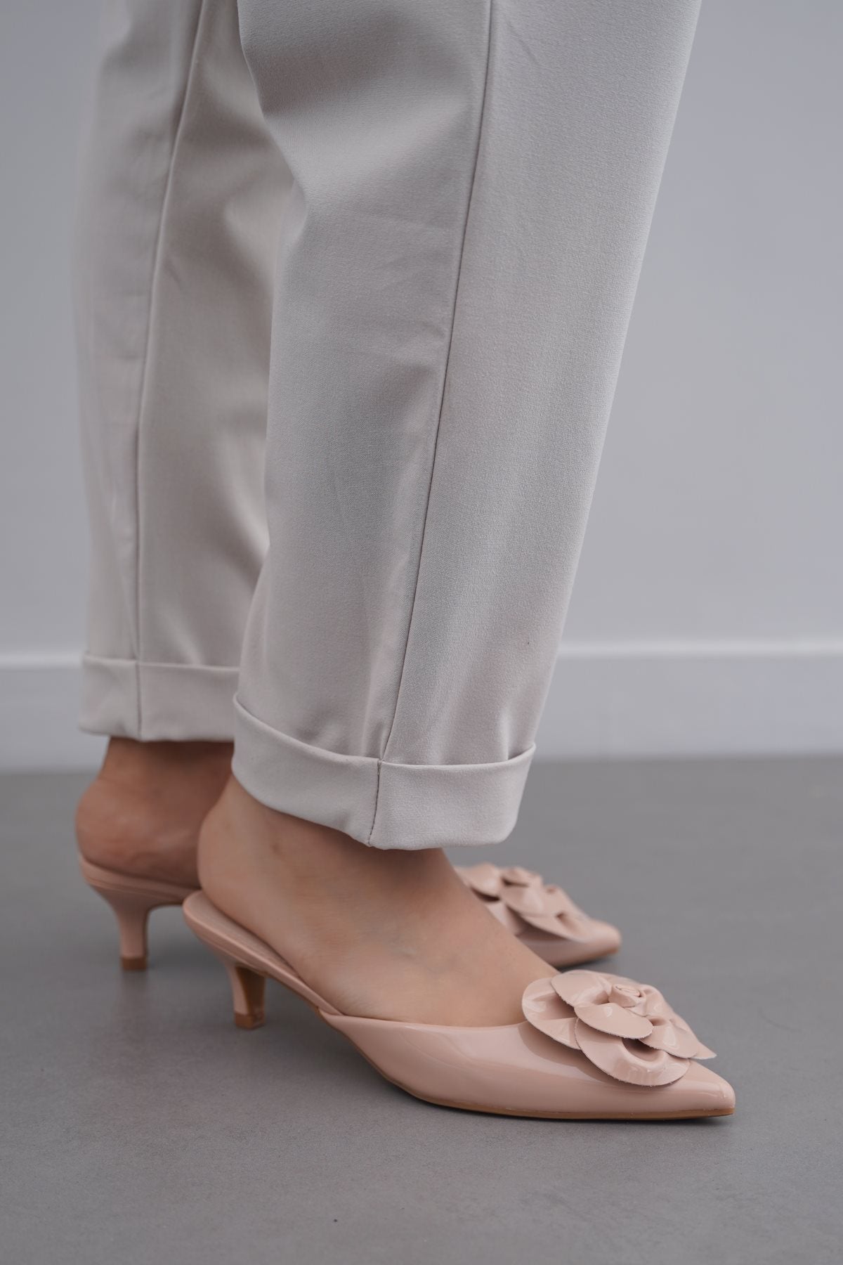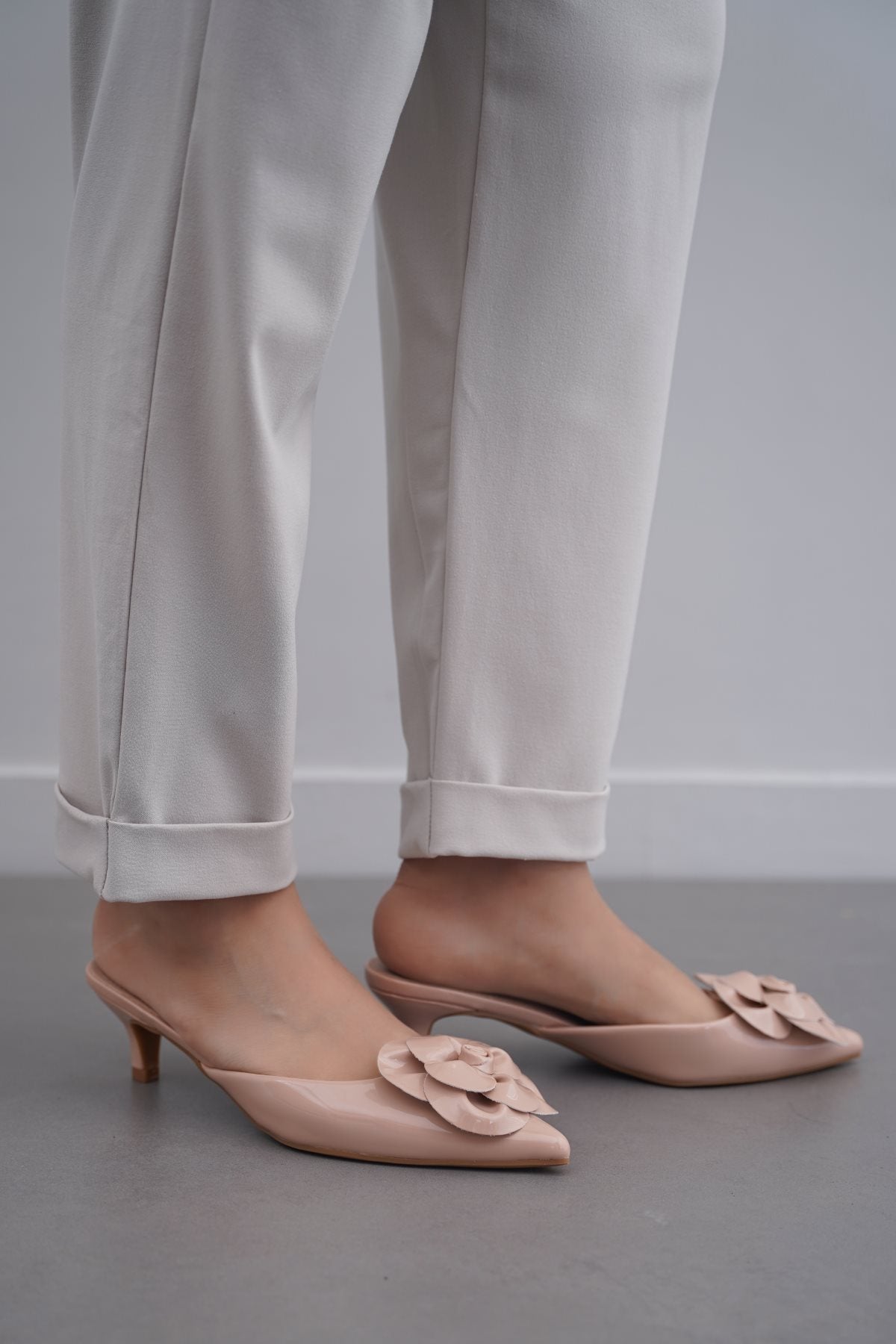 NUDE FLOWER MINI HEELS