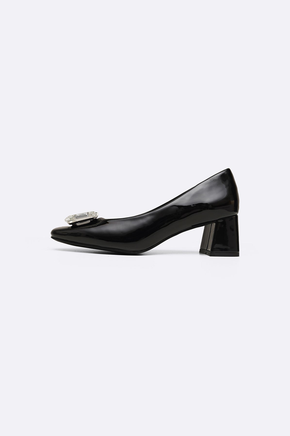 Design detail: Comfortable patent block heels with soft insole and anti-slip patch on the heel.