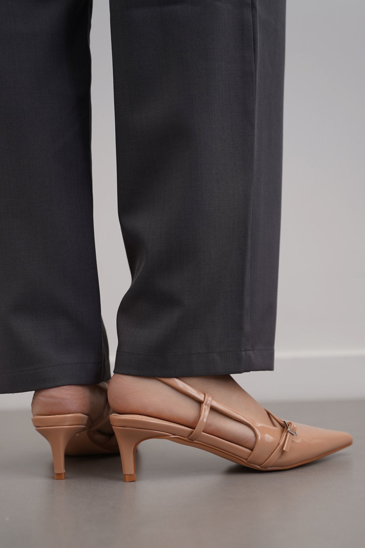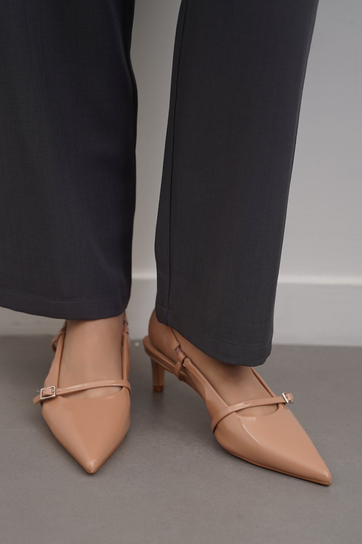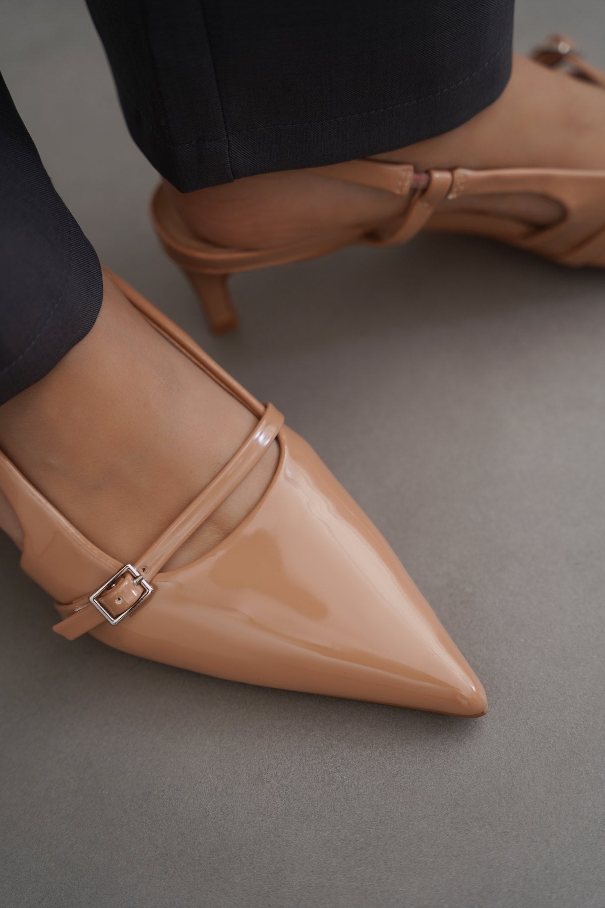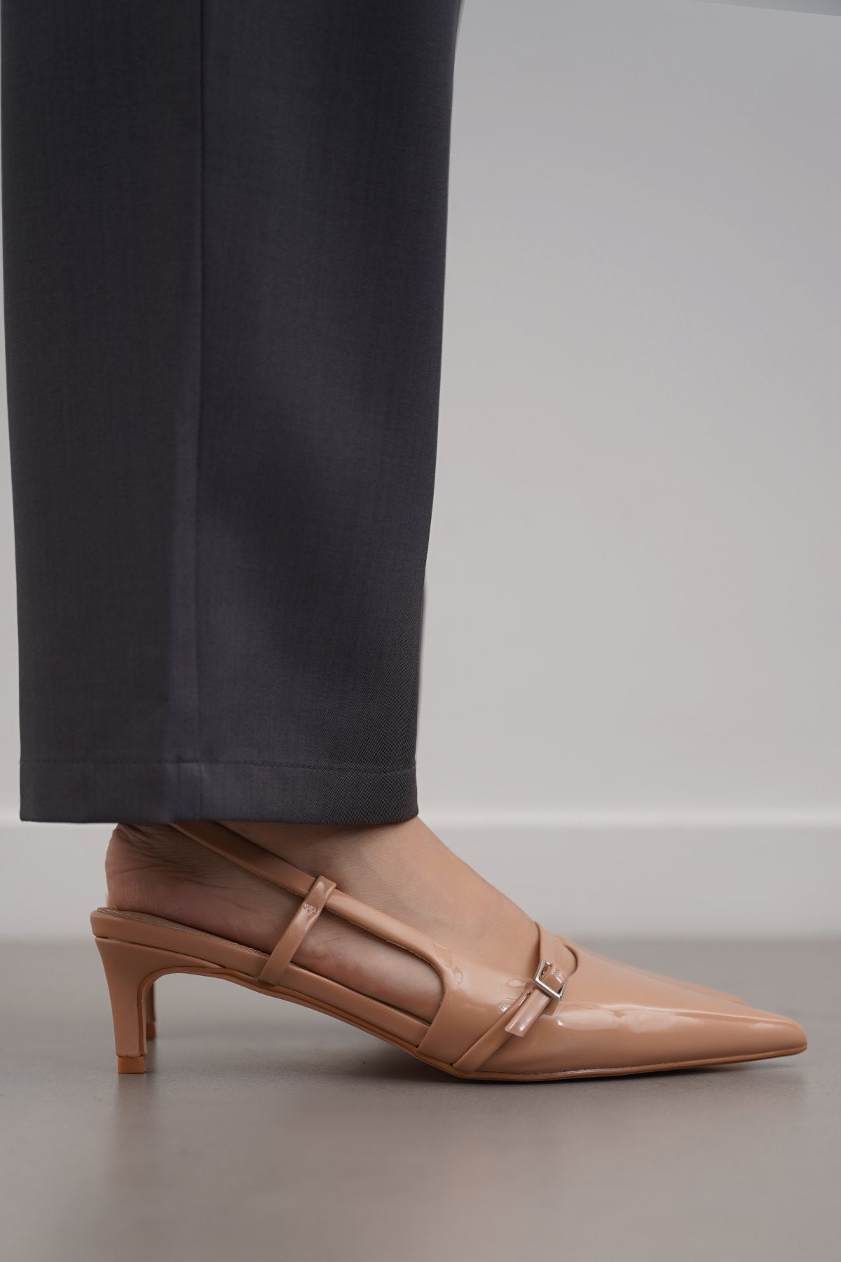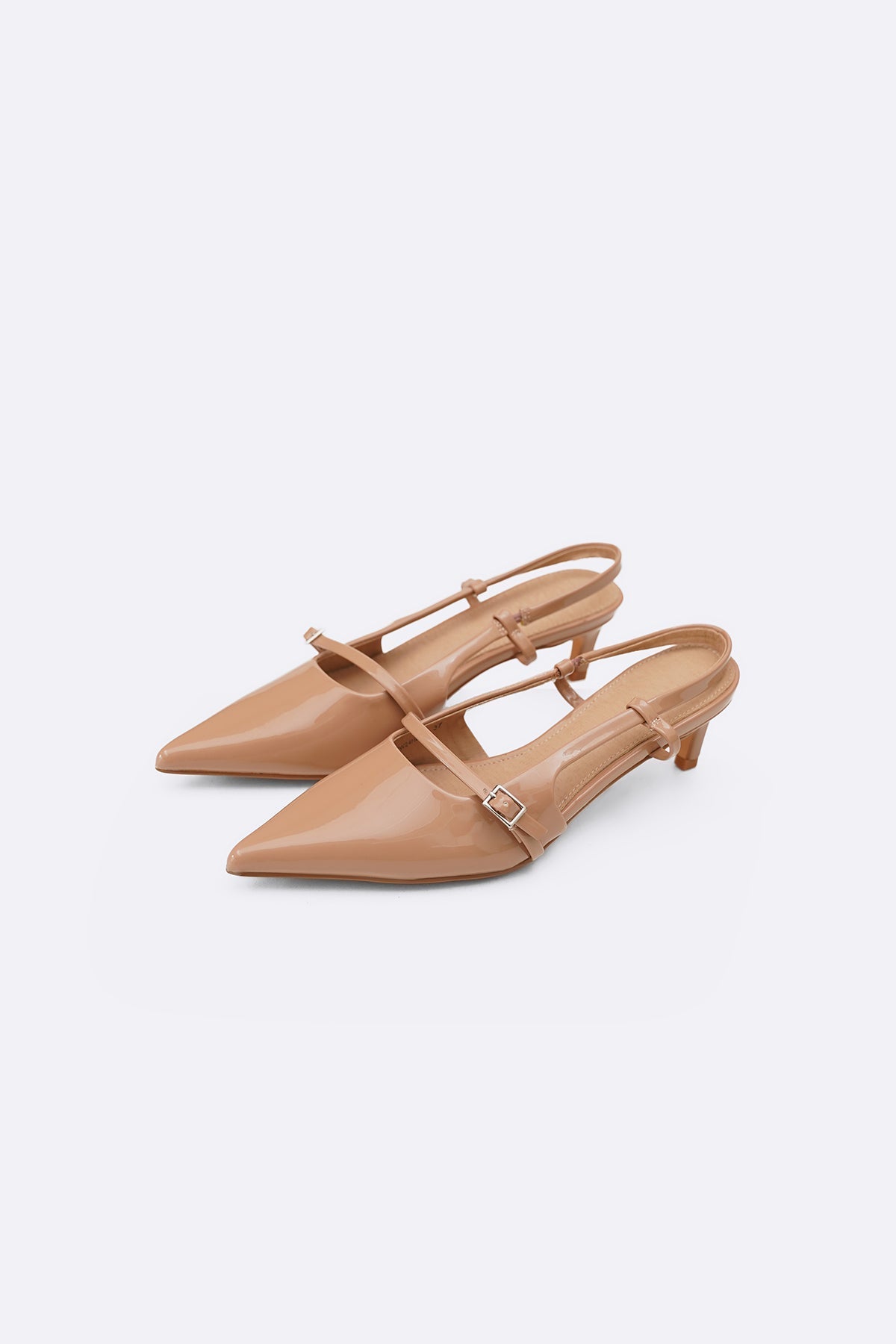 Pointy slingback kitty heels with buckle strap detail, good to wear for any occasion.