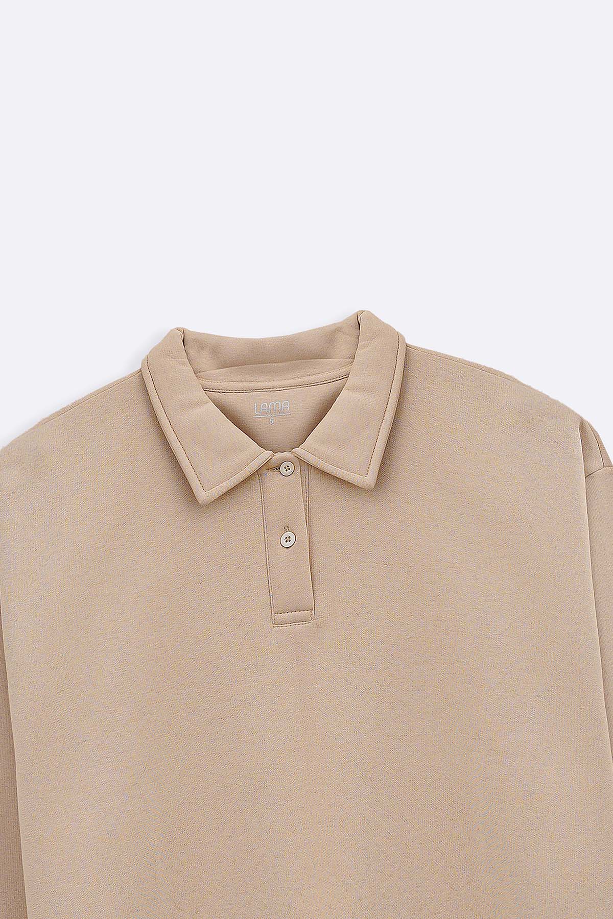 Design details: Collared fleece-lined polo with quarter button fastening along with long sleeves and ribbed trims.