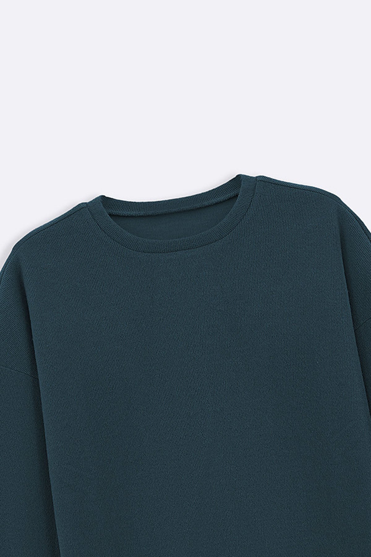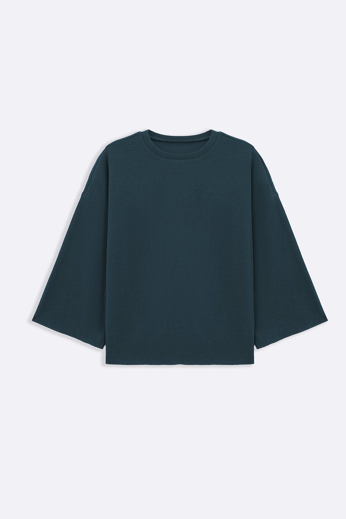 Design details: Crew-neck sweatshirt with long sleeves, self-finished at the hem and sleeves.