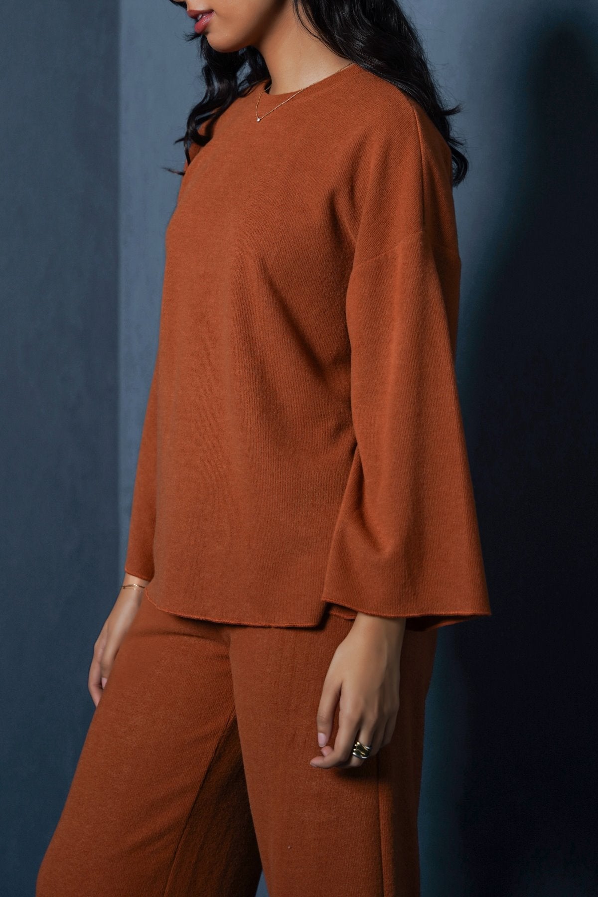 Design details: Crew-neck sweatshirt with long sleeves, self-finished at the hem and sleeves.