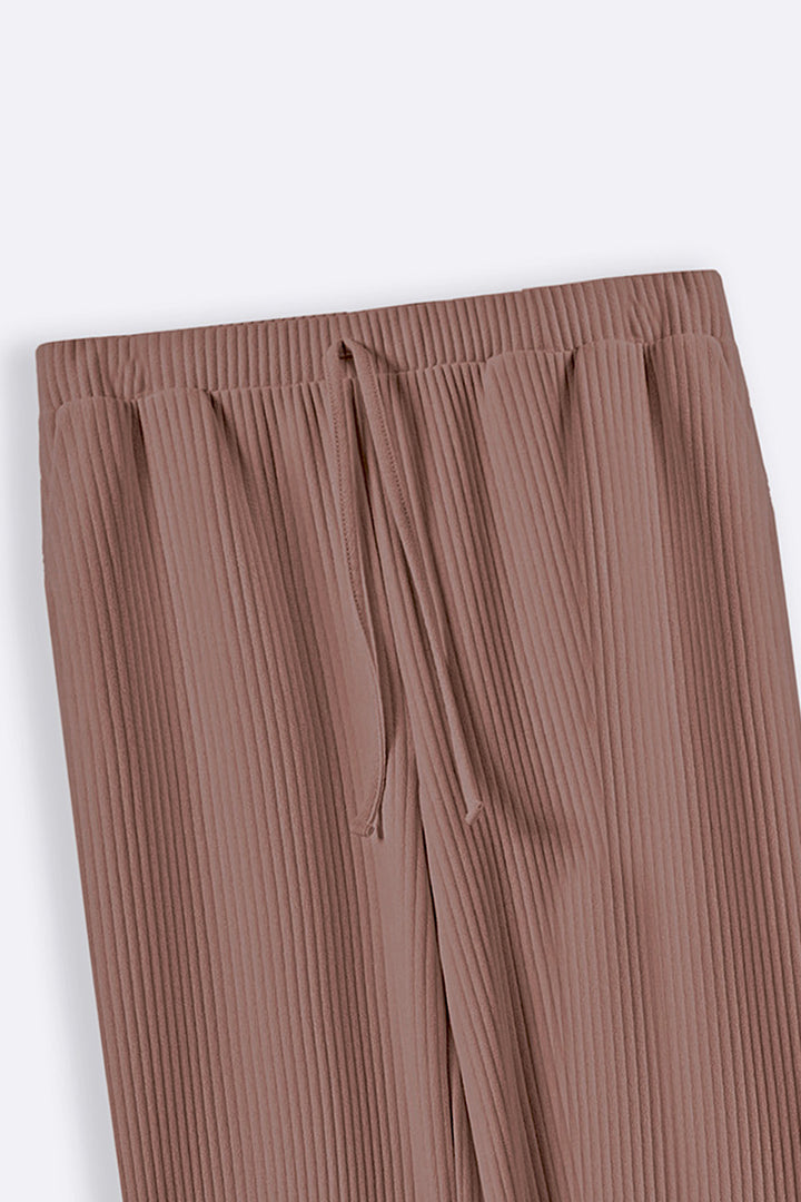 Design details: Stretchy waistband trousers featuring drawstrings and side pocket details.