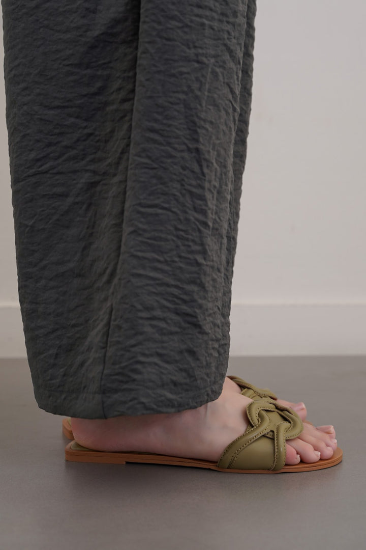 Pretty stitch detail slides with a rope knot pattern and cushioned patch on the insole.