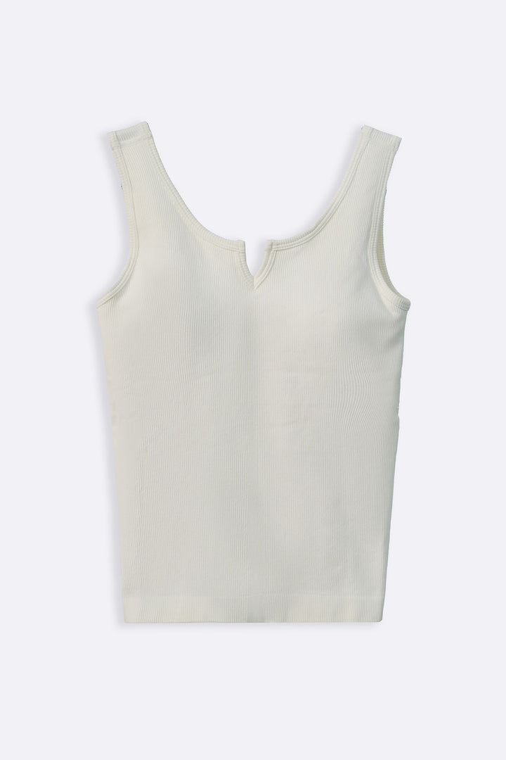 Design details: A ribbed-knit tank top with built-in padding for subtle shaping and wide straps, designed for effortless everyday wear.