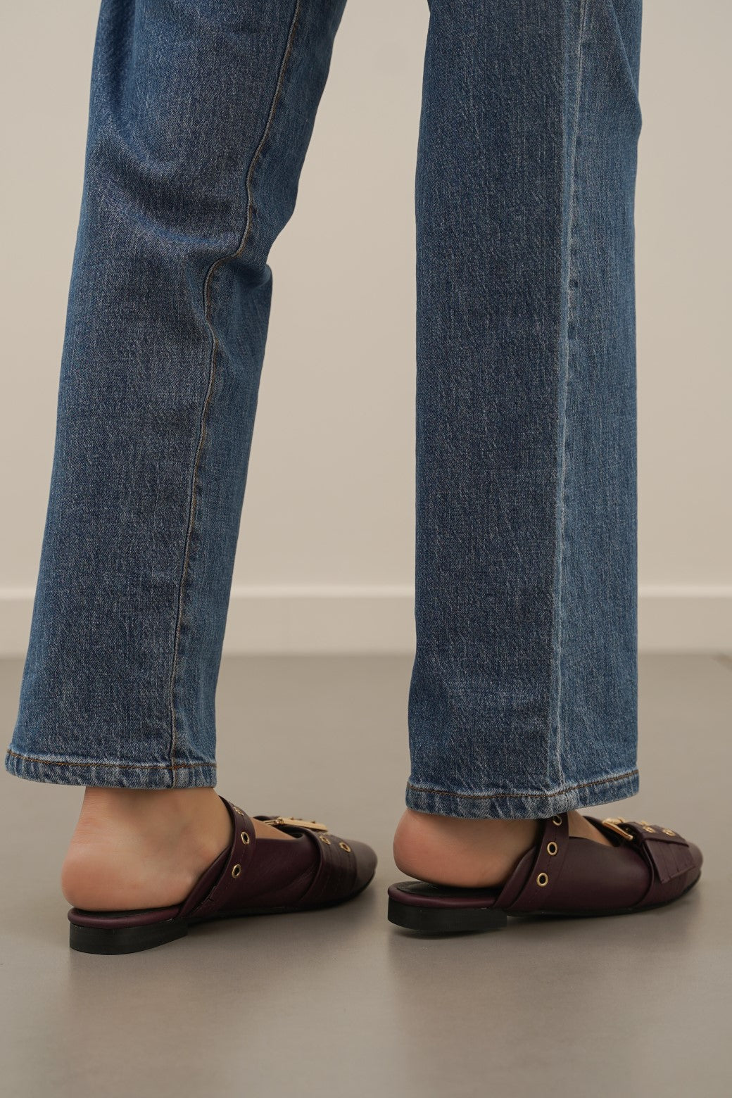Design detail: Statement leather mules with comfortable leather insole and anti-slip outsole.