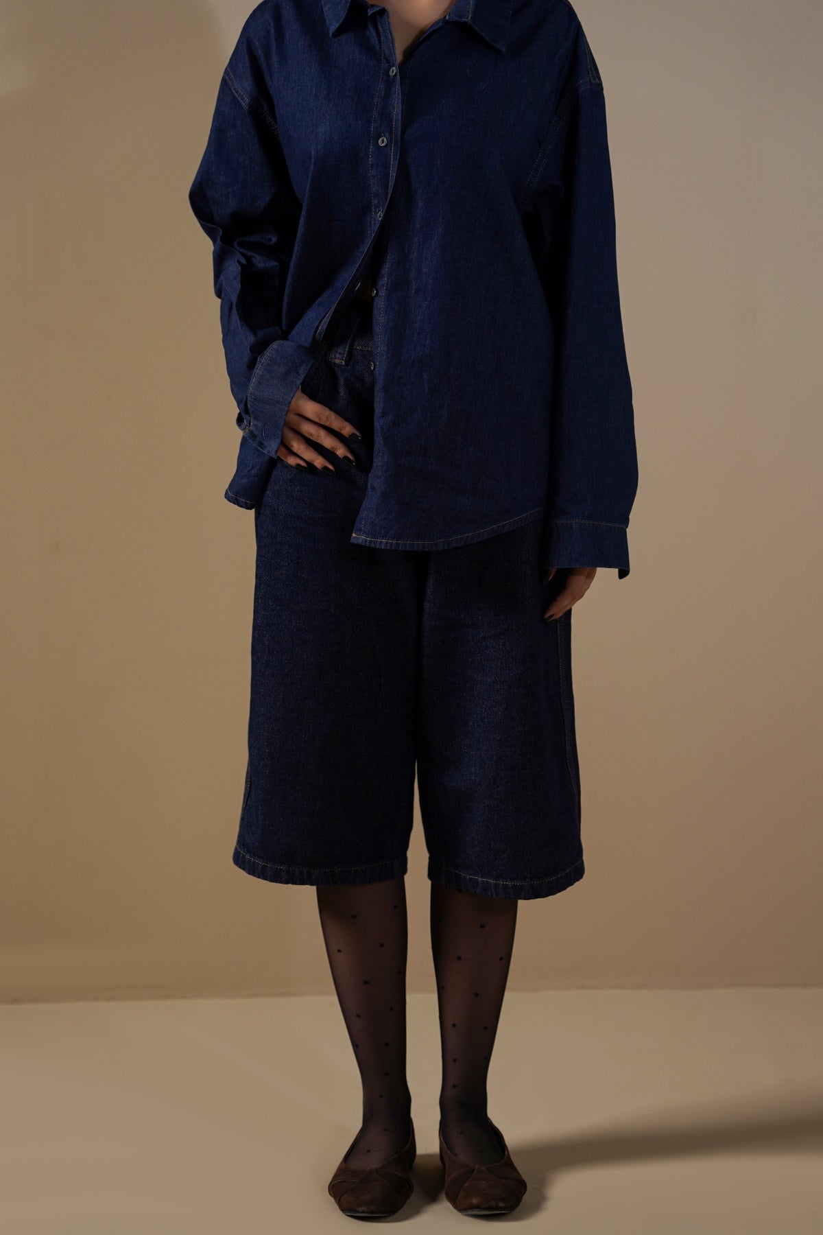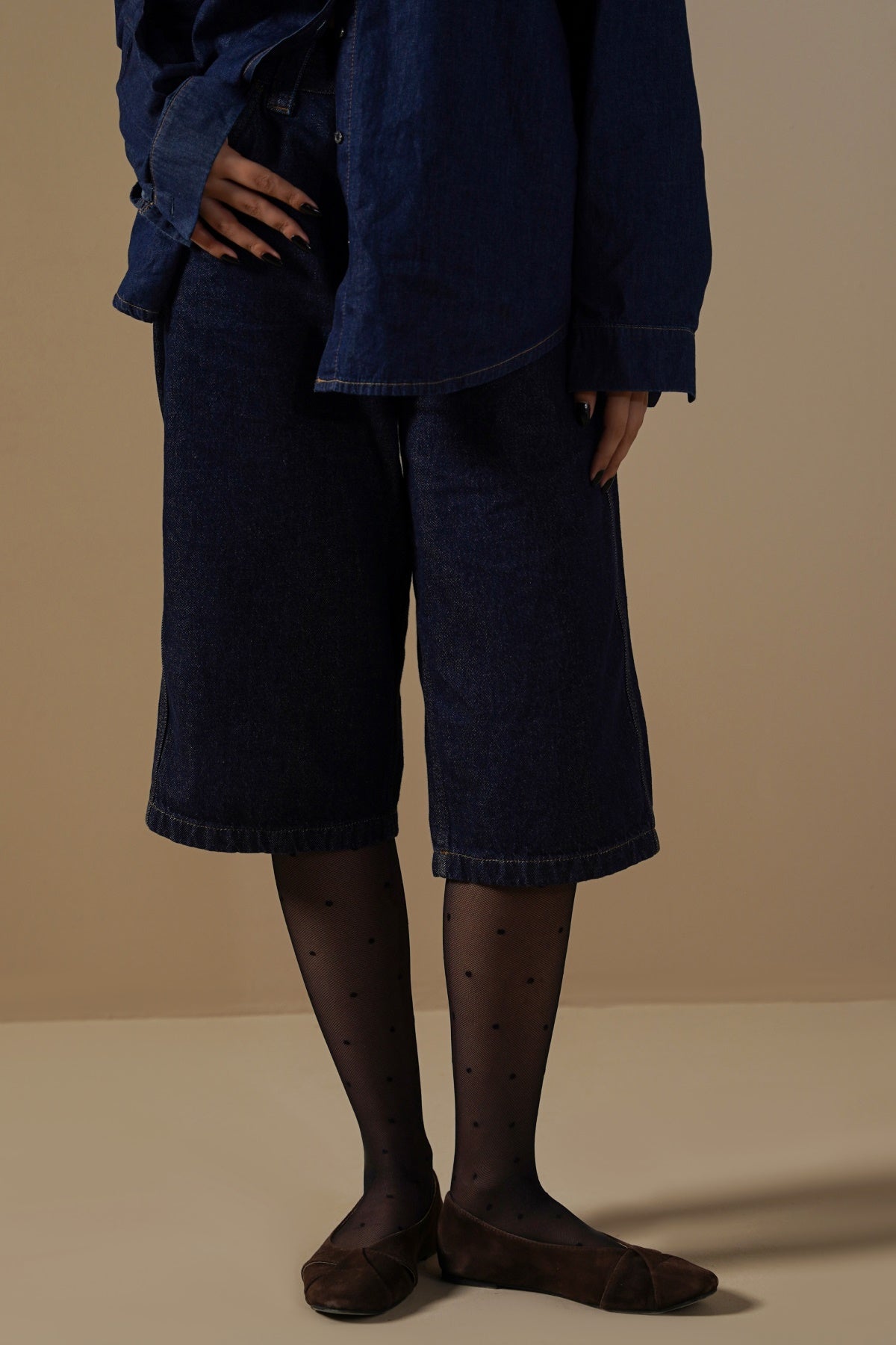 Design details: Mid rise jorts with pockets, zip fly and metal button closure.