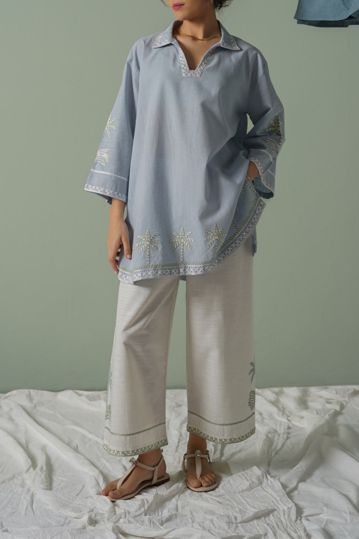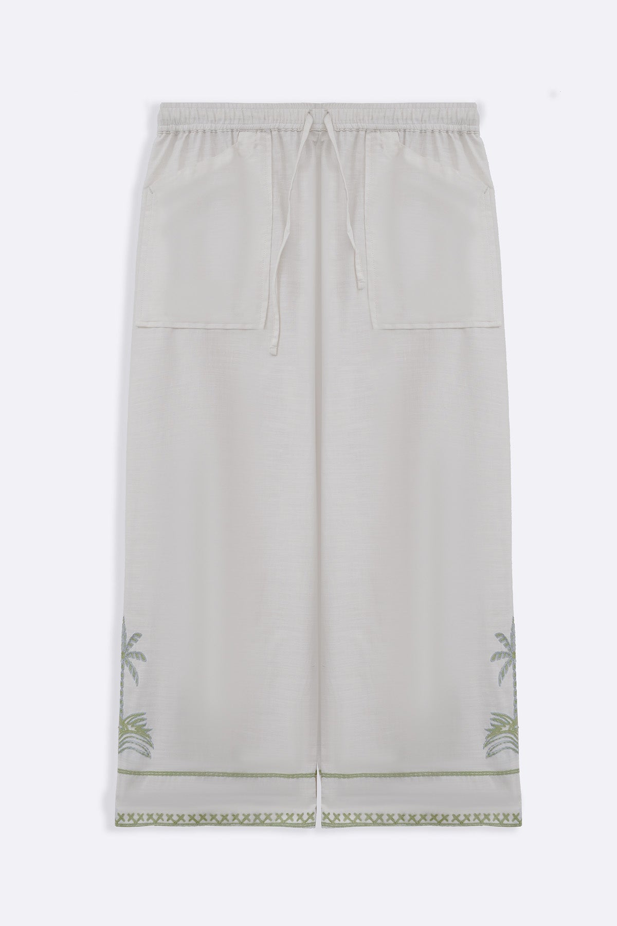 Design details: Embroidered culottes with front side pockets, and a fully elasticated waistband with drawstrings.