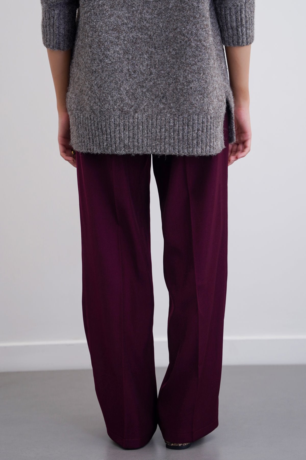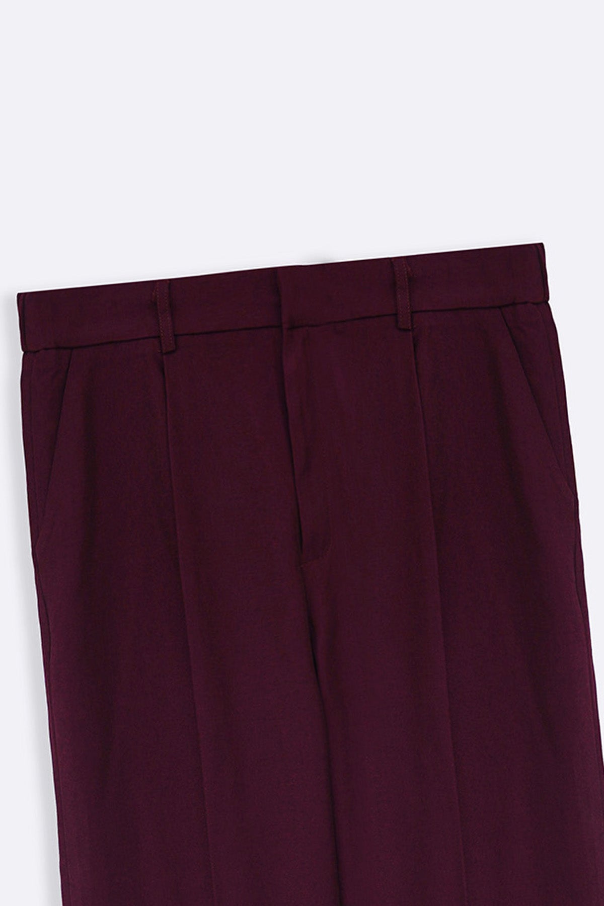 Design details: Straight fit tailored pants with side pockets, half elastic waistband and zip button closure.
