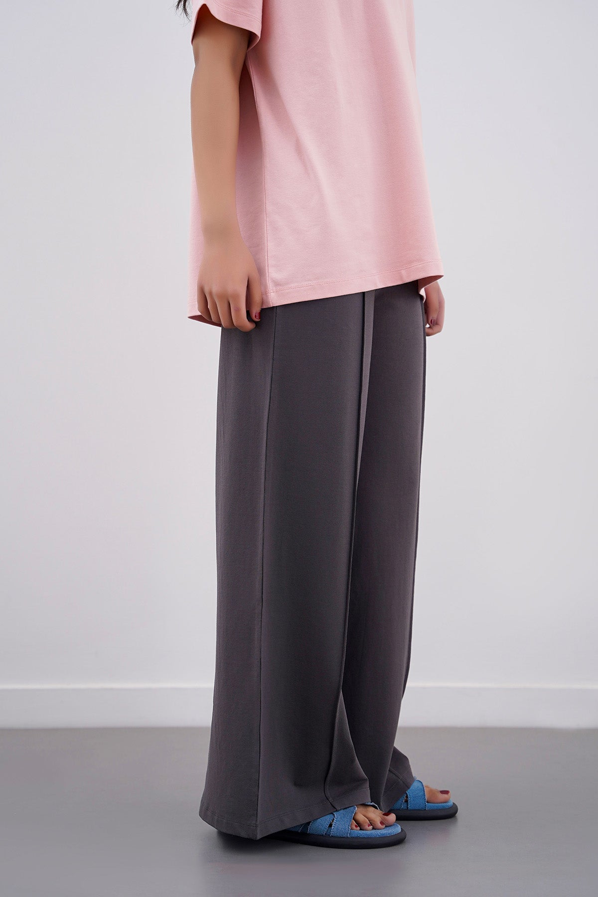 Design details: Made in lightweight t-shirt fabric. Pleat design in the center, elasticated waist band, wide-leg cut.