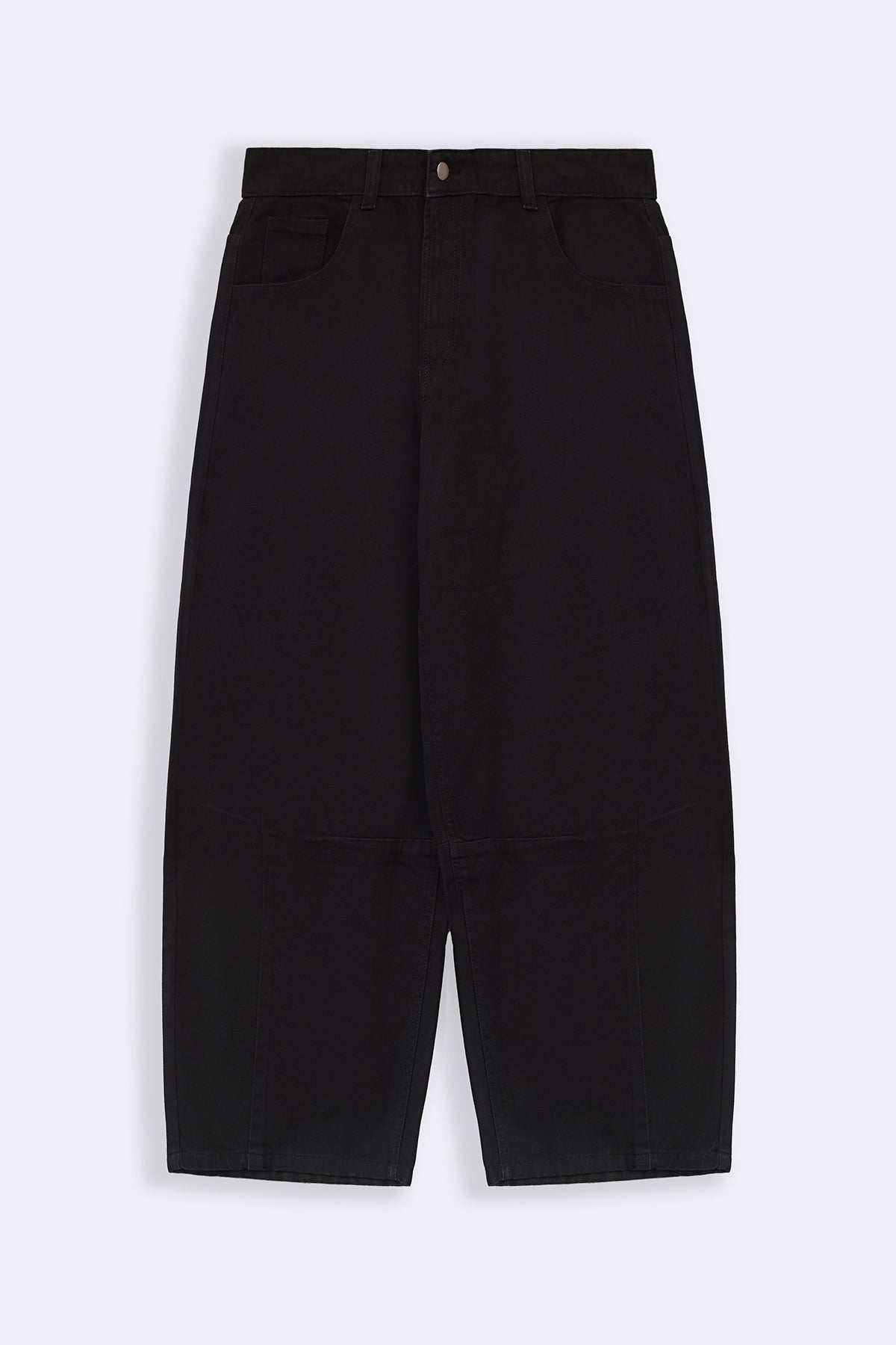Design details: Barrel leg jeans with pockets, zip fly and metal button closure.