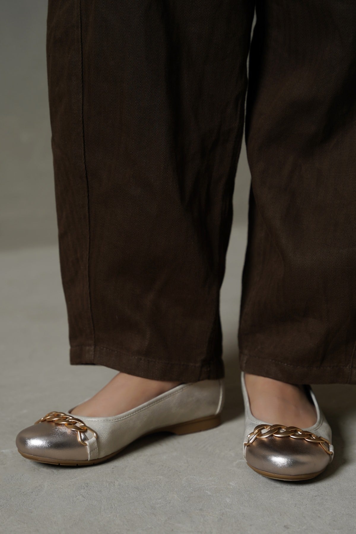 Soft toe-cap mama pumps with a light gold chain on top, cushioned insole and anti-slip outsole.
