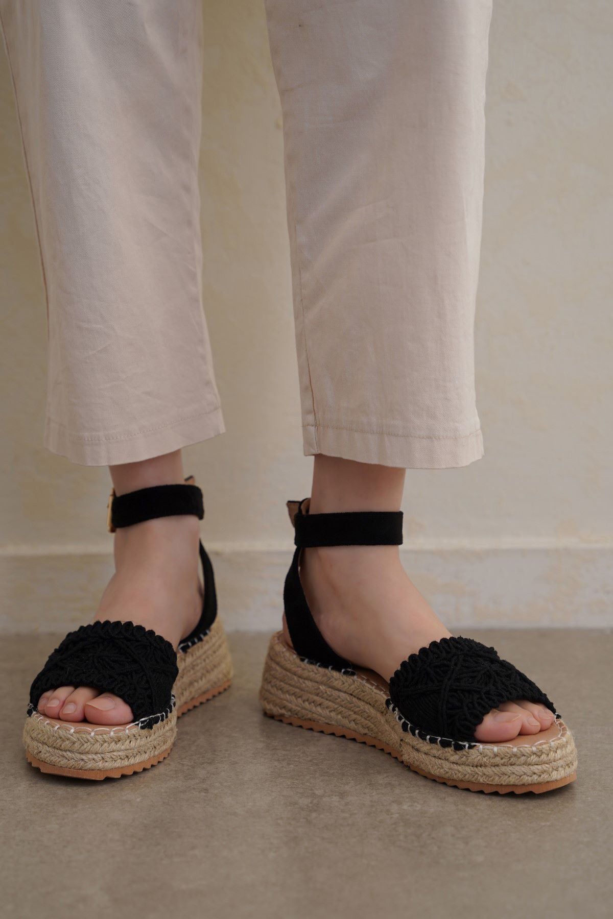 Woven espadrille sandals with soft insole, side stitch detail, adjustable buckle and anti-slip outsole.